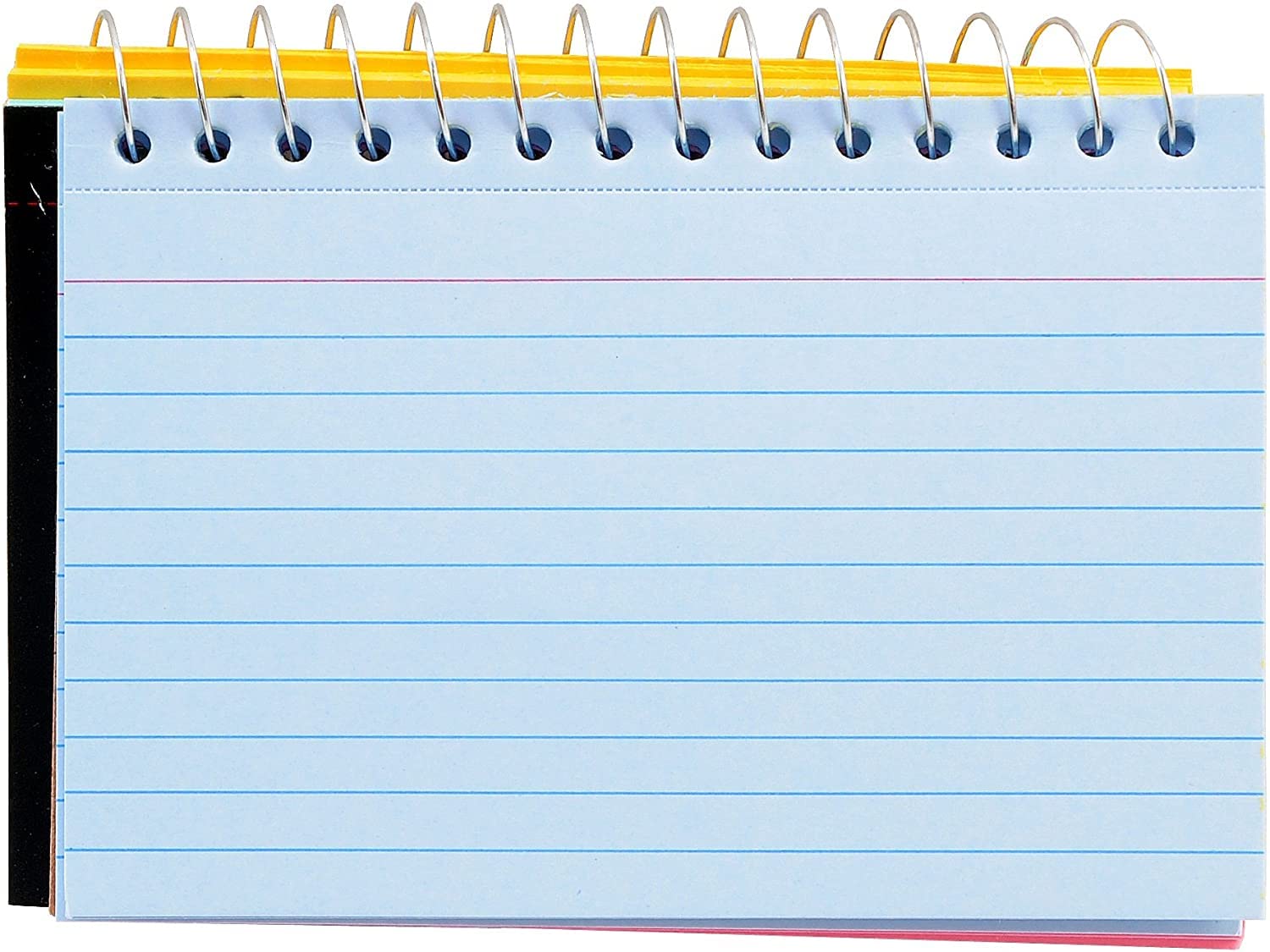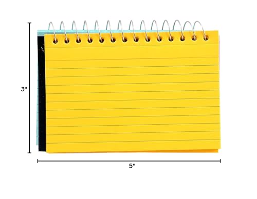• BRIGHT COLORS: Index Cards are 3-inches by 5-inches and come in bright colors of Canary Yellow, Ocean Blue, Cherry Red, and Meadow Green. Spiral Index Card book is perforated to allow easy, no mess tear outs.
