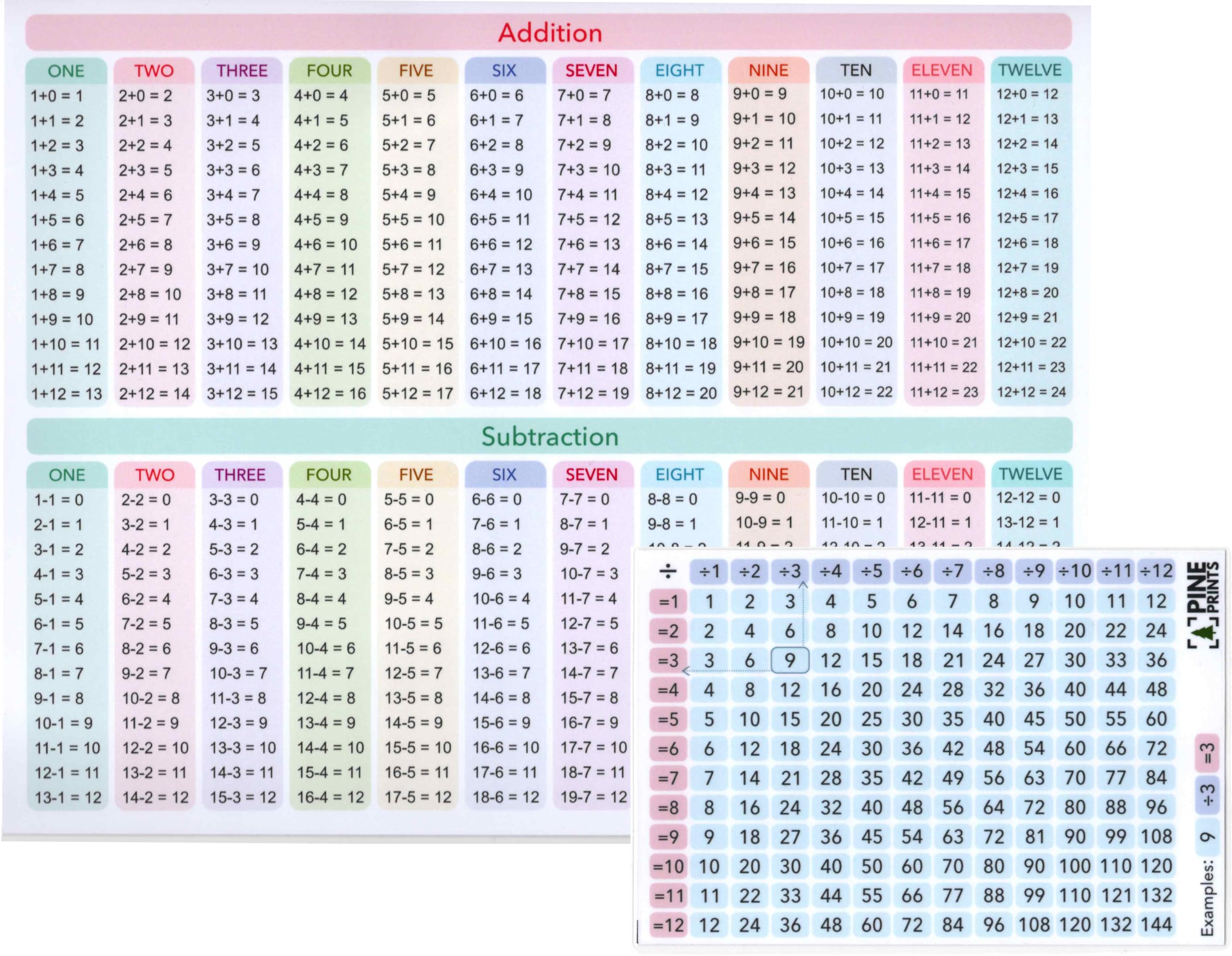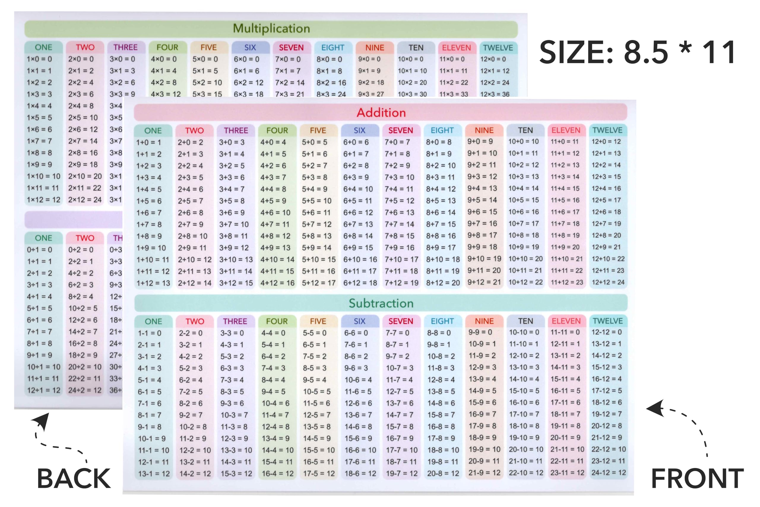 - COMPREHENSIVE CONTENT: Features essential math operations including multiplication, division, addition, and subtraction tables in clear, organized layouts