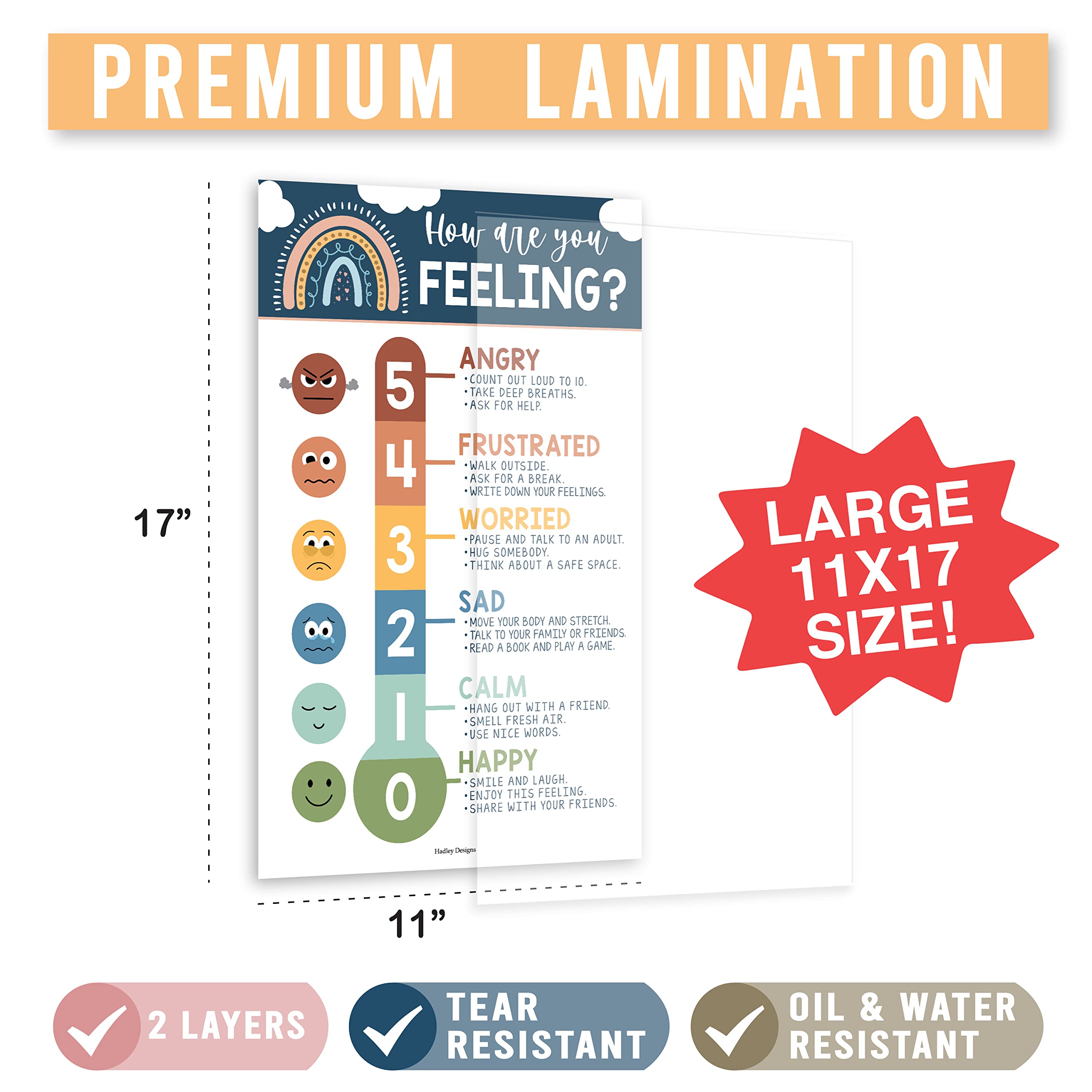 Tame Tantrums And Manage Meltdowns; You’ll receive 8 laminated 11×17″ posters, so you’ll never have to worry about meltdowns again; Use this feelings poster for kids / emotion chart for kids to calm children and stop tantrums in their tracks
