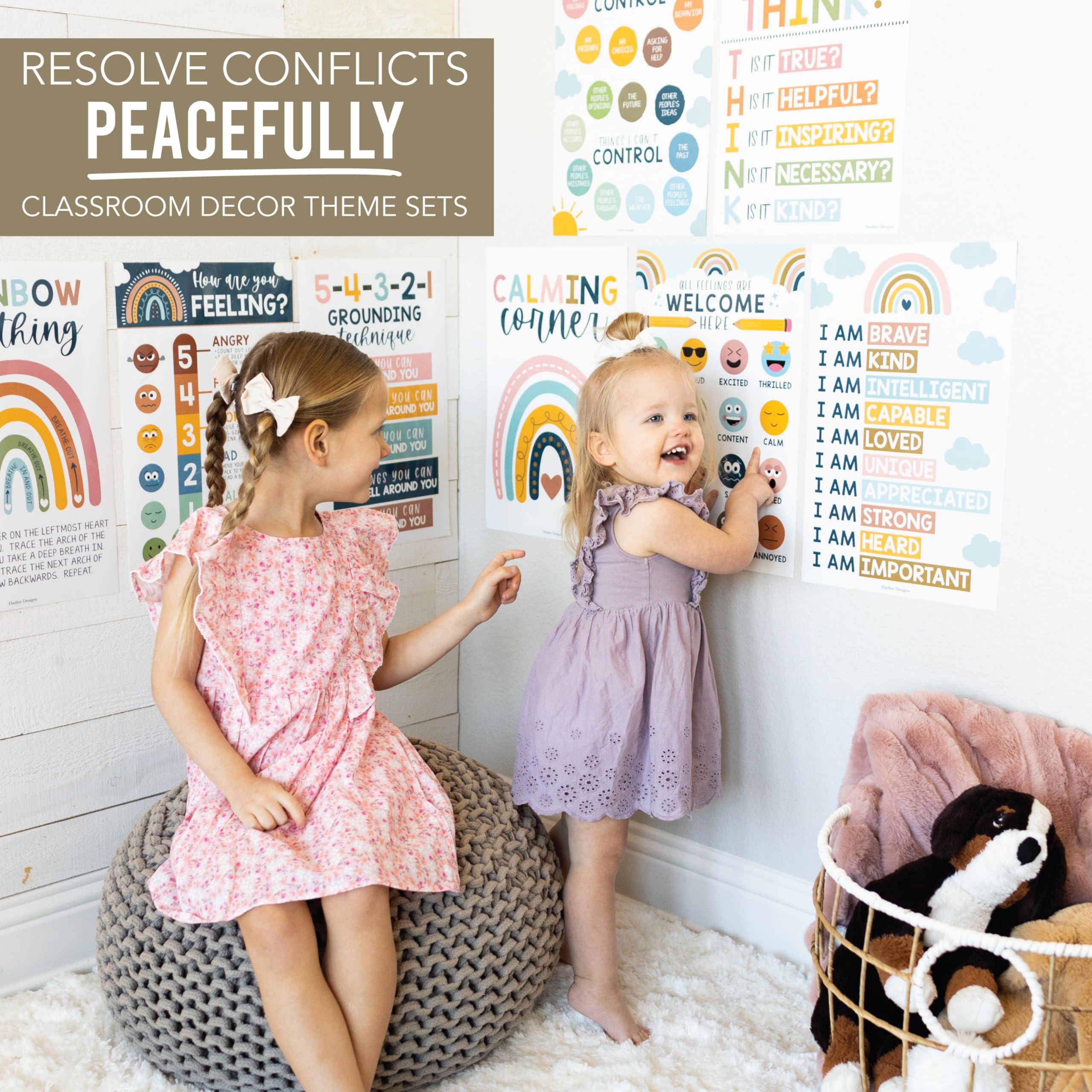 If You’re Looking To Create A Stress-Free Calming Corner To Help Children Cool Off; Then you need this colorful calming corner poster set; While other cool down corner for classroom walls are made overseas, our calm corner classroom decor is USA designed and laminated