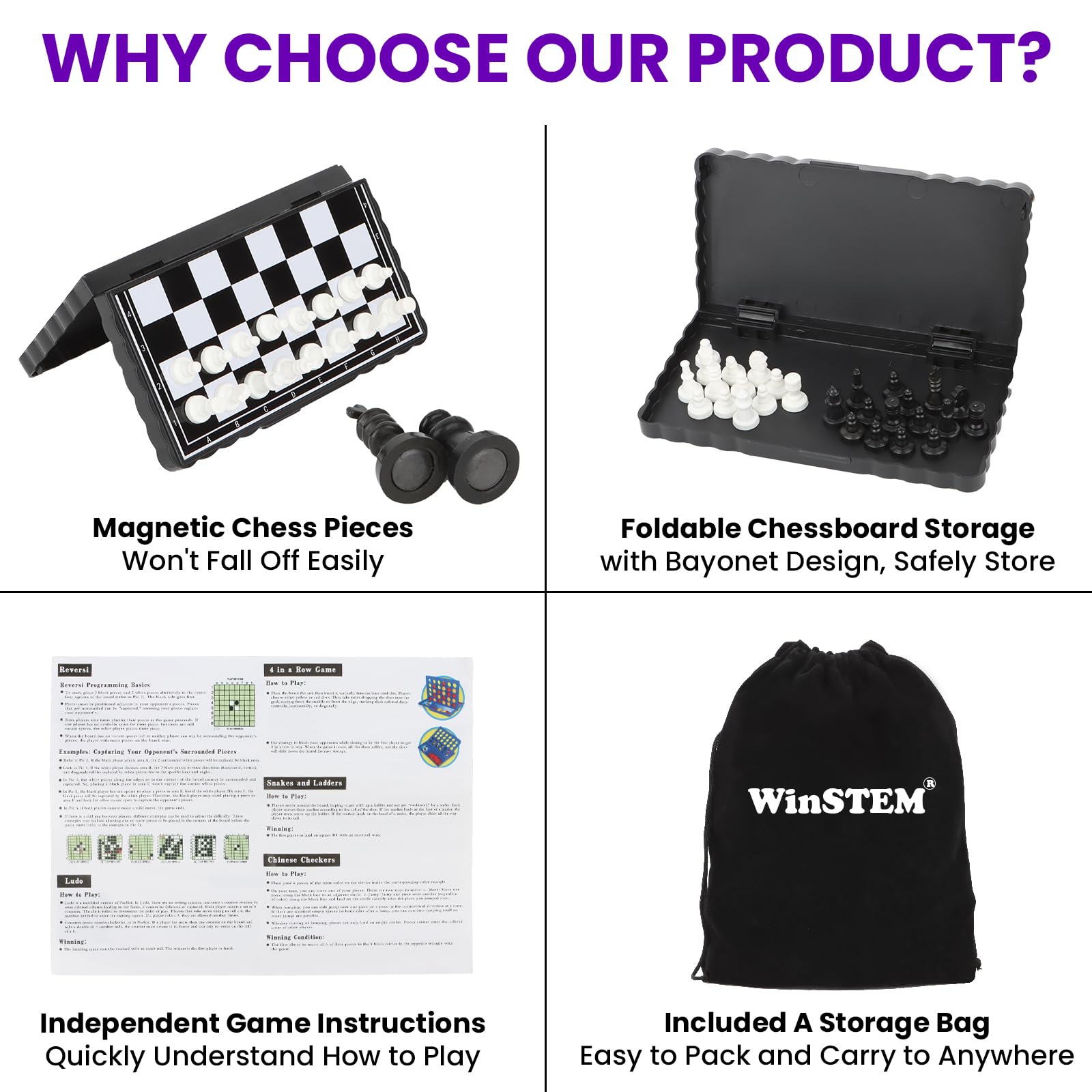 - [(Portable Magnetic Board Game)] Made from ABS material for safe and healthy fun, and the chess pieces with magnetic design on the bottom will move more stable, but there is no great resistance when moving. Pieces for each game are cleverly concealed in their respective cases