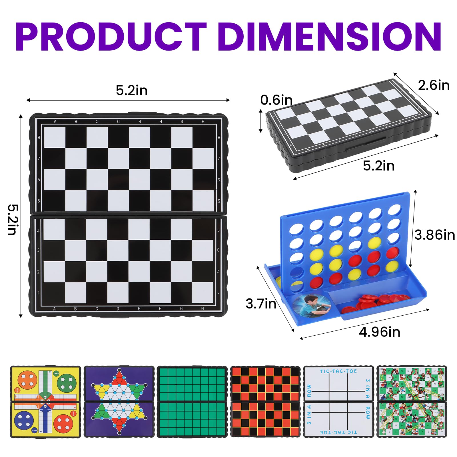 - [(Travel Size Games)] The overall unfolding dimensions of each game board measures about 5.2 inches, the folding size is 2.6ches, small enough to fit in a back pack, bag and car etc.. The mini board games are great for keeping in the car for long road trips or camping, Support multiplayer to play, make the journey full of joy