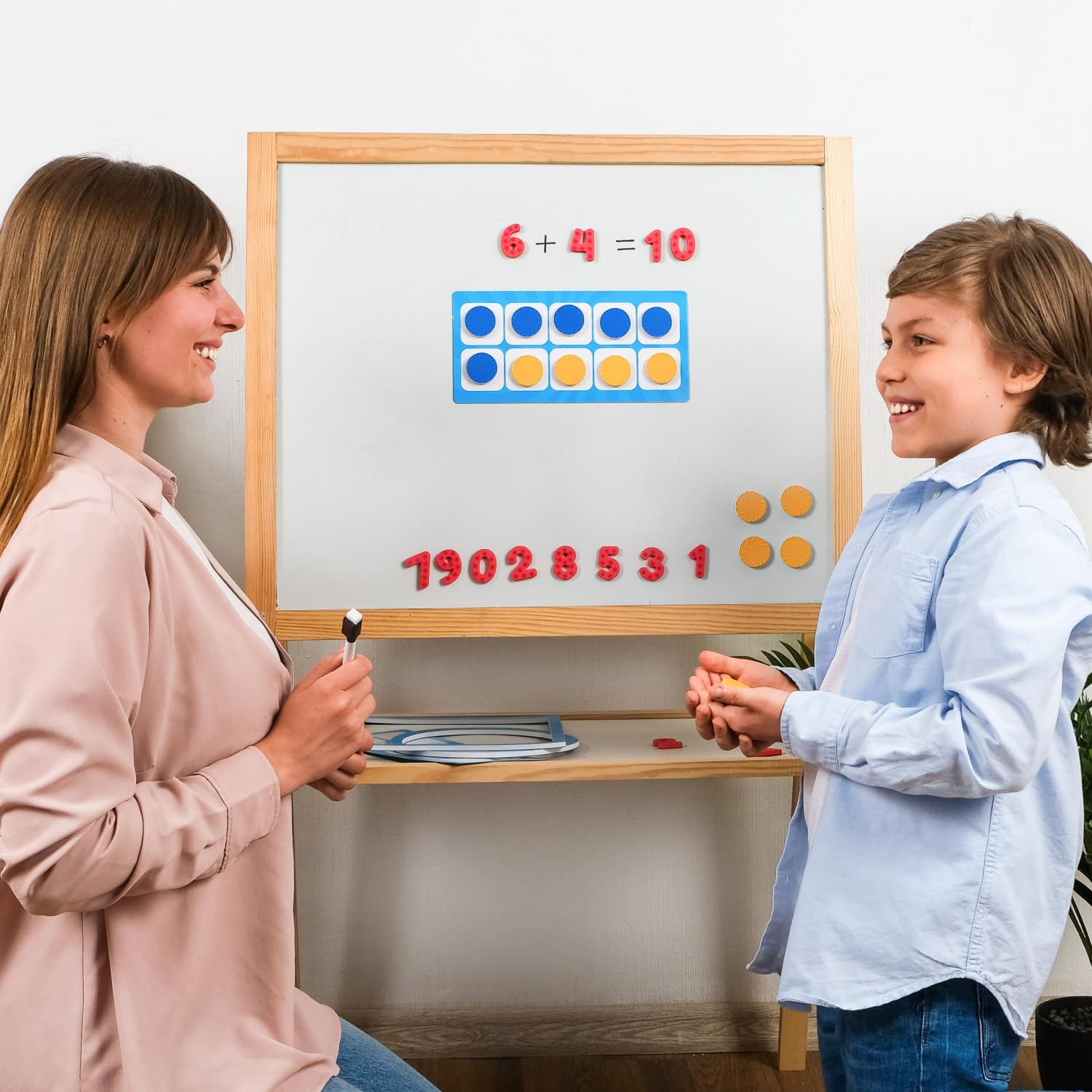 - JUMBO COLORFUL MAGNETIC NUMBER BONDS AND TEN FRAMES SET FOR CLASSROOMS – Designed by teachers for hours of math learning fun! Easily explain base ten and place value, relationships between numbers, addition and subtraction, develop number sense! Perfect magnetic math manipulatives for kindergarten, preschool, 1st, 2nd classrooms and homeschool.