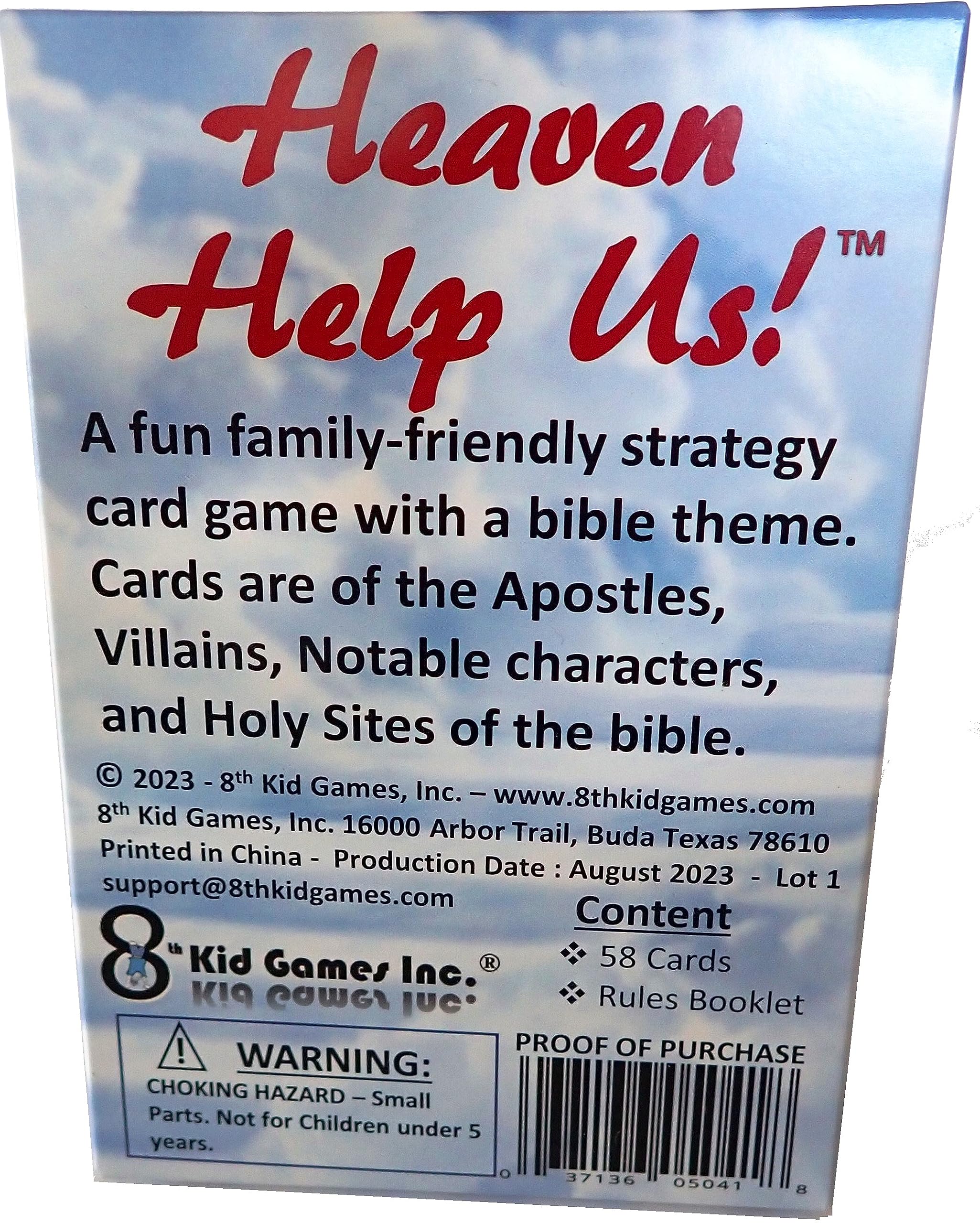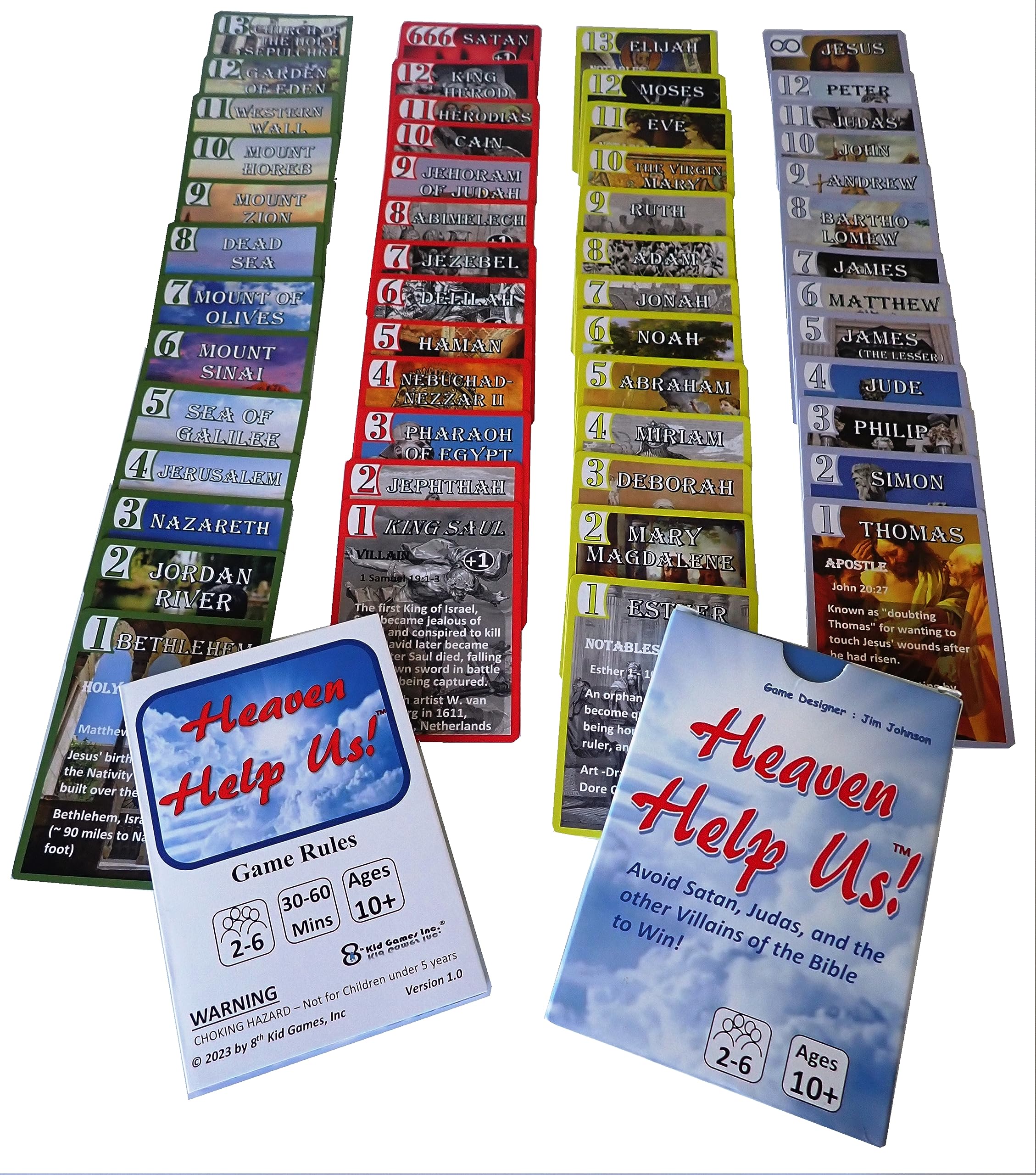 - WHAT’S INSIDE – Heaven Help Us contains 58 specialized bible related cards. Printed on premium playing card stock. Includes easy to follow and learn Rules Booklet.