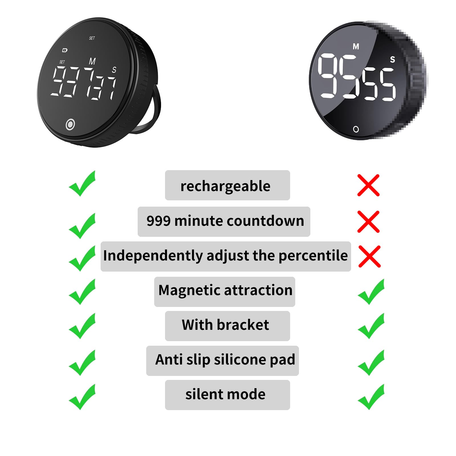 999 Minutes,Digital Kitchen Timer,with Large LED Display ,Magnetic Countdown Countup Visual Timer,rechargeability,for Classroom Cooking Fitness Baking Studying Teaching,Easy for Kids & Seniors