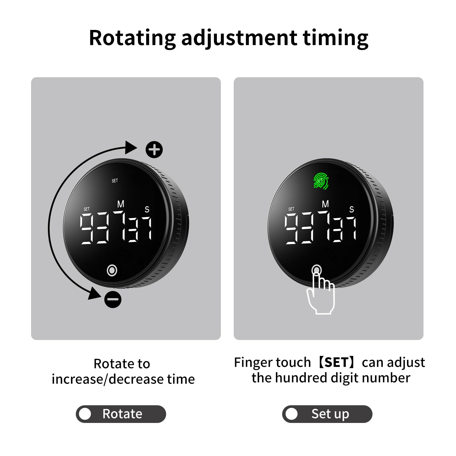 • [(Effortless Rotary Control & Intuitive Operation)] Twist the outer ring to adjust time effortlessly – fast rotation changes minutes in 1/5 increments, slow rotation for precise 1-second adjustments. Single-press start/stop button enables instant countdown (0-999min) or stopwatch mode. Specially designed for seniors and children with zero learning curve