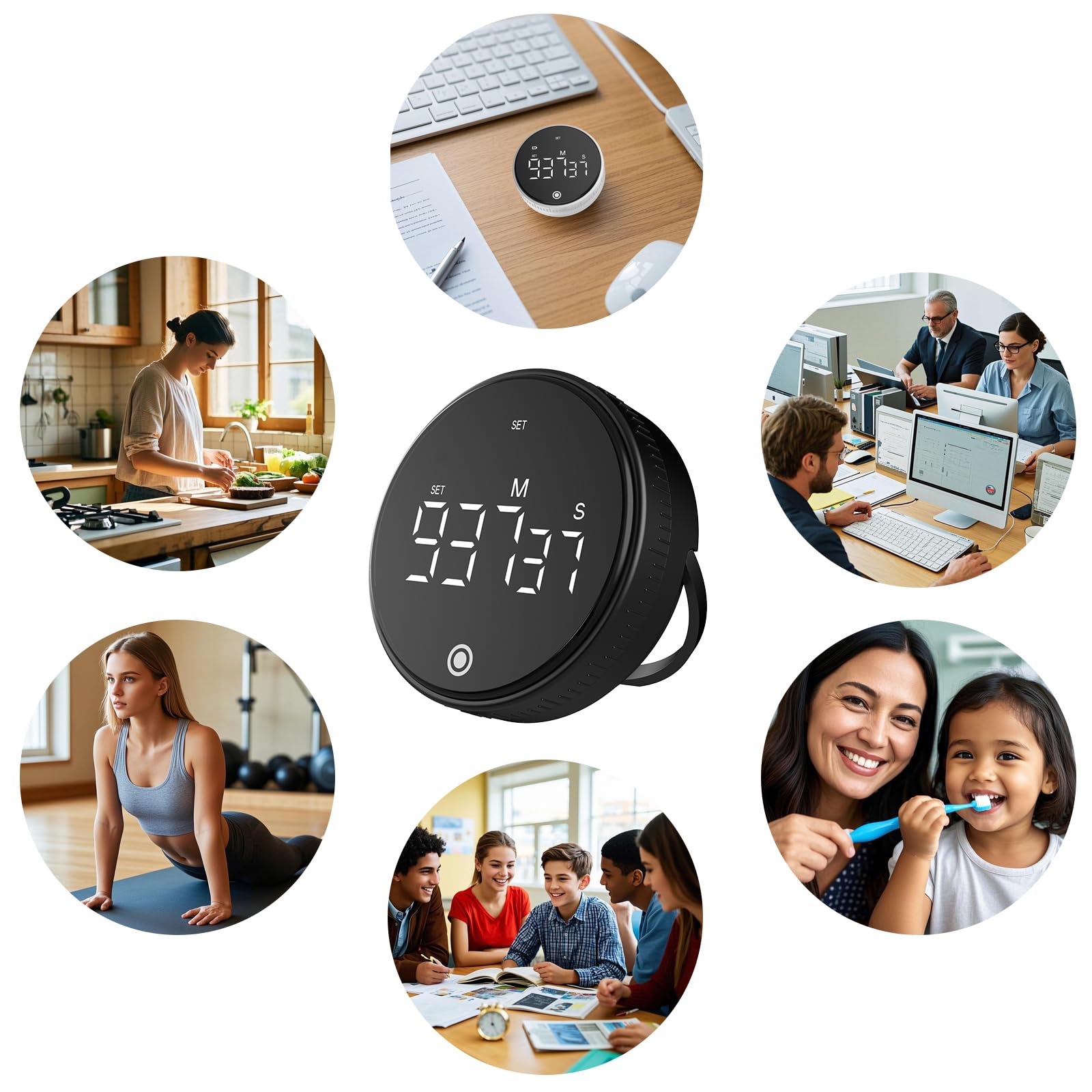 • [(Multi-Scenario Time Master)] From cooking (1-second precision) to Pomodoro study sessions, this timer adapts to 15+ scenarios: baking, fitness intervals, meeting countdowns, gaming limits, beauty treatments, and classroom management. Helps children develop time awareness through tactile interaction