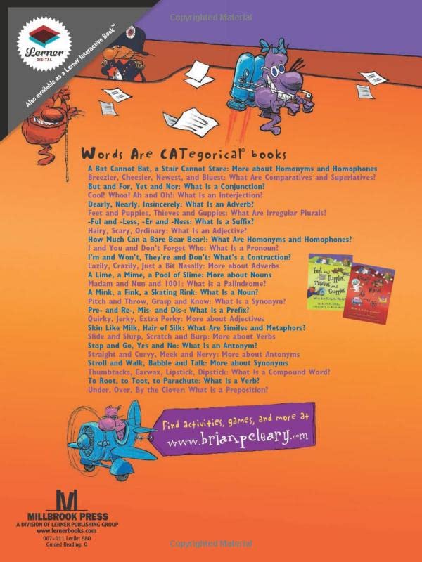 Do you think there’s no more to know about homonyms and homophones? This book will prove you wrong! With dozens of laughs per second, the value of the lesson doesn’t lessen the second time around. Brian P. Cleary’s playful rhymes and Martin Goneau’s humorous illustrations creatively present fresh examples of homonyms and homophones for young readers. For easy identification, each pair of homonyms or homophones appears in color, and the comical cats help bring each idea to the fore. A Bat Cannot Bat, a Stair Cannot Stare: More about Homonyms and Homophones turns traditional grammar lessons on end! Read and reread this book aloud and delight in the sense–and nonsense–of words.