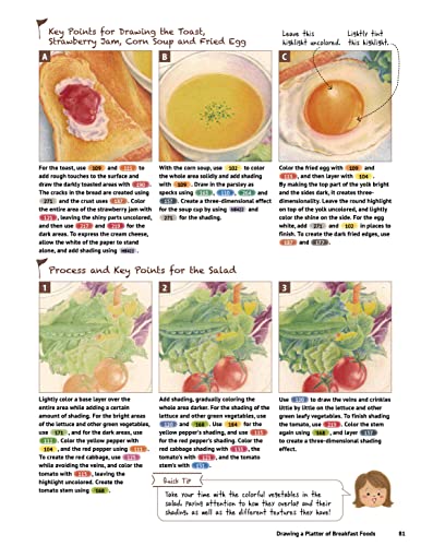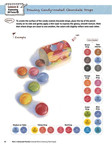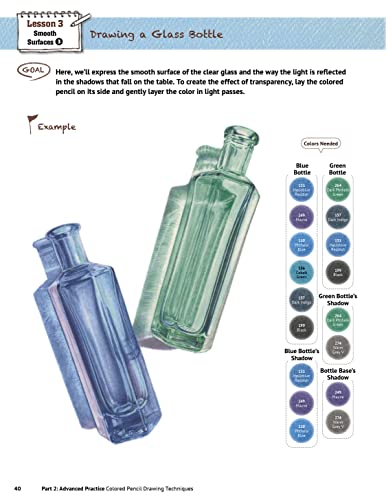 This guide teaches students fundamental and advanced techniques for colored pencil drawing.