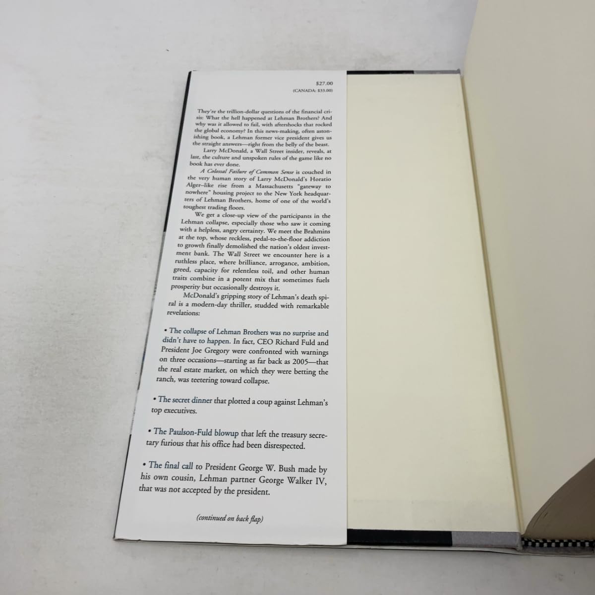 One of the biggest questions of the financial crisis has not been answered until now. What happened at Lehman Brothers and why was it allowed to fail, with aftershocks that rocked the global economy? In this news-making, often astonishing book, a former Lehman Brothers Vice President gives us the straight answers–right from the belly of the beast. In A Colossal Failure of Common Sense, Larry McDonald, a Wall Street insider, reveals the culture and unspoken rules of the game like no book has ever done. The book is couched in the very human story of Larry McDonald’s Horatio Alger-like rise from a Massachusetts “gateway to nowhere” housing project to the New York headquarters of Lehman Brothers, home of one of the world’s toughest trading floors. We get a close-up view of the participants in the Lehman collapse, especially those who saw it coming with a helpless, angry certainty. We meet the Brahmins at the top, whose reckless, pedal-to-the-floor addiction to growth finally demolished the nation’s oldest investment bank. The Wall Street we encounter here is a ruthless place, where brilliance, arrogance, ambition, greed, capacity for relentless toil, and other human traits combine in a potent mix that sometimes fuels prosperity but occasionally destroys it. The full significance of the dissolution of Lehman Brothers remains to be measured. But this much is certain: it was a devastating blow to America’s–and the world’s–financial system. And it need not have happened. This is the story of why it did.