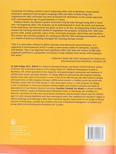 Containing everything needed to teach beginning skills such as imitation, visual spatial awareness, expressive and receptive language skills and skills of daily living, this comprehensive ABA curriculum has been developed for individuals on the autism spectrum with a developmental age of approximately 3-5 years. Evidence-based, the resource guides instructors step-by-step through using ABA to teach over 140 beginning skills. The program can be individualized to meet the needs and interests of the individual, and instructions are given on how to do this. The accompanying online downloadable content contains the teaching materials needed to implement the program, including over 1000 color picture cards, handy printable copies of the curriculum programs, data forms and checklists. The authors also provide guidance on creating an effective ABA teaching environment, as well as a wealth of practical teaching strategies for ensuring therapy success. This is an unparalleled resource for professionals working with children with ASDs who are looking for a robust and ready-to-implement ABA curriculum. It will be a valuable tool for behaviour analysts, teachers, psychologists, occupational therapists and students in these fields, as well as to parents working with professionals to implement an ABA program.