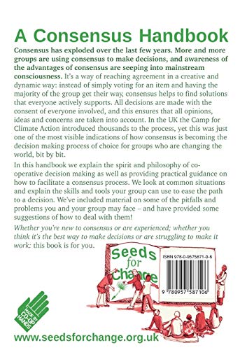 “Excellent – clear guidance, thoughtful reflection on power and conflict” – THE GUARDIAN (UK) A practical guide to facilitating consensus decision making The essential manual for grassroots organising by Seeds for Change, one of the leading activist training collectives This book explains the spirit and philosophy of co-operative decision making, and gives practical, easy to read guidance on how to facilitate a consensus process. A Consensus Handbook looks at common situations and explains the skills and tools your group can use to ease the path to a decision. Includes: Skills and tools for facilitation and decision making Small and large groups Face to face or virtual meetings Spirit and philosophy of consensus decision making Troubleshoot your consensus process – a guide to dealing with common pitfalls and problems Consensus in the wider world – how can consensus decision making be used outside small groups? Whether you’re new to consensus or are experienced; whether you think it’s the best way to make decisions or are struggling to make it work: this book is for you!