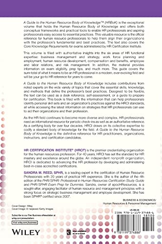 An essential reference for HR professionals A Guide to the HR Body of Knowledge (HRBoKTM) from HR Certification Institute (HRCI(r)) is an essential reference book for HR professionals and a must-have guide for those who wish to further their expertise and career in the HR field. This book will help HR professionals align their organizations with essential practices while also covering the Core Knowledge Requirements for all exams administered by HRCI. Filled with authoritative insights into the six areas of HR functional expertise: Business Management and Strategy; Workforce Planning and Employment; Human Resource Development; Compensation and Benefits; Employee and Labor Relations; and Risk Management, this volume also covers information on exam eligibility, and prep tips. Contributions from dozens of HR subject matter experts cover the skills, knowledge, and methods that define the profession’s best practices. Whether used as a desk reference, or as a self-assessment, this book allows you to: Assess your skill set and your organization’s practices against the HRCI standard Get the latest information on strategies HR professionals can use to help their organizations and their profession Gain insight into the body of knowledge that forms the basis for all HRCI certification exams As the HR field becomes more diverse and complex, HR professionals need an informational “home base” for periodic check-ins and authoritative reference. As a certifying body for over four decades, HRCI has drawn upon its collective expertise to codify a standard body of knowledge for the field. The HRBoK is the definitive resource that will be your go-to HR reference for years to come.