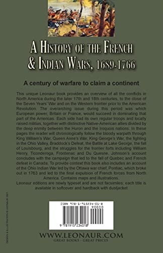 A century of warfare to claim a continent This unique Leonaur book provides an overview of all the conflicts in North America during the later 17th and 18th centuries, to the close of the Seven Years’ War and on the Western frontier prior to the American Revolution. The overarching issue during this period was which European power, Britain or France, would succeed in dominating that part of the Americas. Each side had its own regular troops and locally raised militias, together with distinctive Native-American allies divided by the deep enmity between the Huron and the Iroquois nations. In these pages the reader will chronologically follow the bloody warpath through King William’s War, Queen Anne’s War, King George’s War, the fighting in the Ohio Valley, Braddock’s Defeat, the Battle at Lake George, the fall of Louisbourg, and the struggles for the frontier forts including William Henry, Ticonderoga, Frontenac and Du Quesne. Johnson’s account concludes with the campaign that led to the fall of Quebec and French defeat in Canada. To provide context this book also includes an account of the Ohio Indian War led by the Ottawa war chief, Pontiac, which broke out in 1763 and led to the final expulsion of French forces from North America. Contains maps and illustrations. Leonaur editions are newly typeset and are not facsimiles; each title is available in softcover and hardback with dustjacket.