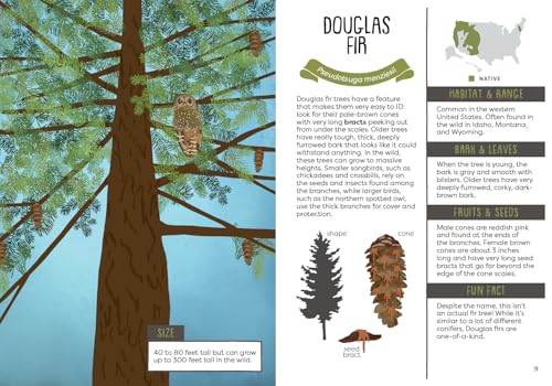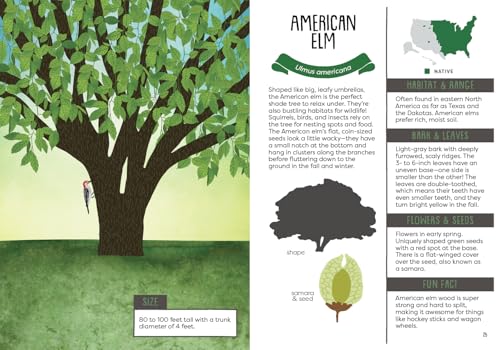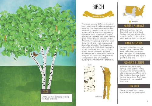 Packed with captivating facts about the most common trees in the United States and Canada, this brightly illustrated guide is perfect for young nature lovers. “It will leave youngsters primed to look more carefully at trees, and readers of all ages will find plenty of sound information. An attractive handbook for beginning nature enthusiasts.”– Kirkus “This accessible field guide concentrates on visual elements like leaves, offering easy ways of identifying and differentiating types of trees….Intended for personal use, this still offers plenty of basic information while sparking curiosity.”– Booklist Learn all about the towering trees around you in A Kid’s Guide to Backyard Trees –a handy, easy-to-carry guidebook for explorers that shows you how to identify 40 trees that can be found in North America –using their bark, leaves, flowers, fruits, and seeds. Discover the wild world of trees as you learn about their life cycles, unique features of different types of trees, and why protecting them is important for the planet. Check the glossary for tree-related terms you might not know, keep track of the trees you’ve seen in a handy log, and try out a fun DIY project that lets you practice identifying leaves at home. With A Kid’s Guide to Backyard Trees, children can become expert nature explorers, no matter their age! Also available: A Kid’s Guide to Backyard Bugs A Kid’s Guide to Backyard Birds