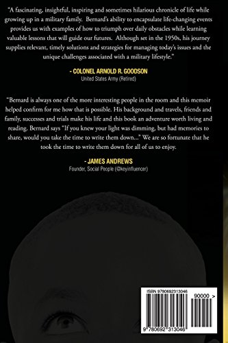A Look Back In Time Featured in Publishers Weekly “A Look Back in Time: Memoir of a Military Kid in the Fifties, Vol. I” is a fascinating, insightful, inspiring, and sometimes hilarious chronicle of life while growing up in a military family – Colonel Arnold R. Goodson, US Army (Retired). Can you imagine what it was like to grow up constantly on the move, serving the country, while chasing the American Dream? “A Look Back in Time: Memoir of a Military Kid in the Fifties, Vol. I” is a heartfelt, humorous, and vivid journey through the eyes of Bernard N. Lee, Jr., as he reflects on his childhood in a military family during one of the most transformative decades in American history. From dusty farms to bustling army bases, young Bernard’s life was shaped by three-year cycles of relocation, new schools, and the ever-present challenge of saying hello–and goodbye–to new friends. This coming-of-age story captures the joys and struggles of being a military kid, especially one growing up Black in 1950s America. Life is a series of moments – magical, challenging, and transformative. You’ll share in Bernard’s: * Laugh-out-loud moments–like the eternal feud with an early-rising rooster. * Raw, emotional scenes–like the quiet tension of a son sitting beside a distant father. * Edge-of-your-seat suspense–including a near-death encounter with a military transport vehicle. * Tender traces of young love–and the scent of perfume that lingered longer than the girl who wore it. Whether you’re a history lover, a military family member, or simply someone who remembers what it felt like to be young and unsure in a changing world, this memoir will stir your heart and your memory. Take a journey through time, space, and history–buy it, read it, and discover how one boy’s story may just echo the treasured memories of your own.