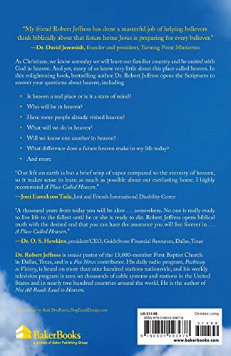 Prepare for what awaits in heaven As Christians, we know someday we will leave our familiar country and be united with God in heaven. And yet many of us know very little about this place called heaven. In this enlightening book, bestselling author Dr. Robert Jeffress opens the Scriptures to answer your questions about heaven, including: * Is heaven a real place or is it a state of mind? * Who will be in heaven? * Have some people already visited heaven? * What will we do in heaven? * Will we know one another in heaven? * What difference does a future heaven make in my life today? * And more This book is perfect for both believers and skeptics who are curious about heaven.