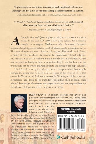 “A grand historical joyride through the medieval world.” -David R. Gillham, New York Times bestselling author of City of Women A Quest for God and Spices begins an epic journey across the ancient world. In the year AD 1200, a new pope agitates for a renewed crusade to reconquer Muslim-controlled Jerusalem. European monarchs largely ignore his call, too involved with squabbles among themselves. The pope chooses two men-Brother Mauro, an older monk, and Nicolo, a young, striving merchant-to traverse the treacherous political, religious, and mercantile terrain of medieval Europe and the Byzantine Empire to seek out the powerful Presbyter John, a mysterious king in the Far East who has promised to put his wealth and vast armies to the service of the pope’s crusade. Nicolo’s task is to guide Mauro, but a corrupt cardinal has secretly charged the young man with finding the source of the precious spices that ensure the Venetian and Arab trade monopoly. Nicolo’s youthful exuberance, carelessness, and desire to be important jeopardizes their mission, while Mauro’s knowledge of scripture and pagan works has not prepared him for the schemes of doges and emirs, clergymen and kings.