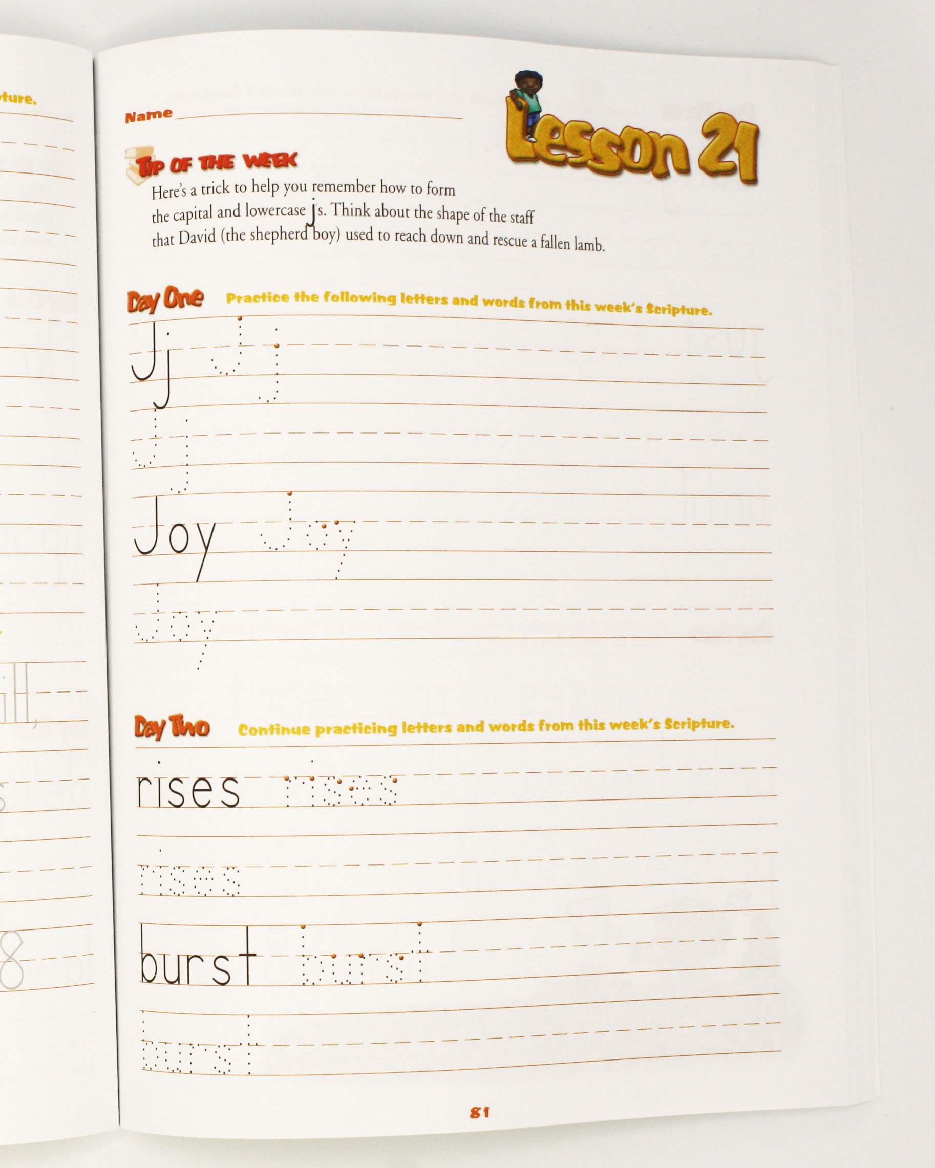 Scripture Handwriting Practice – Each lesson includes learning scripture through practicing writing