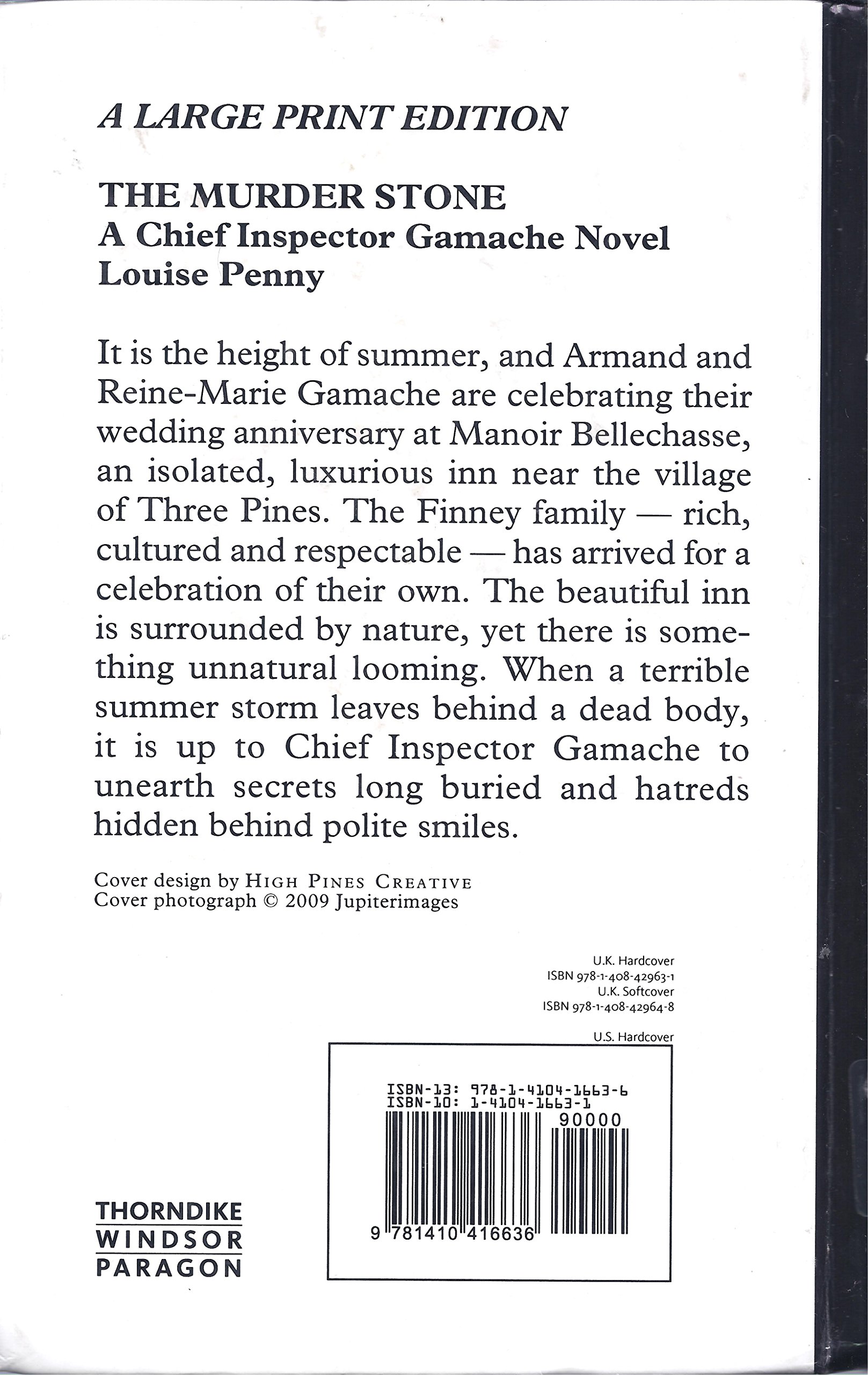 It is the height of summer, and Armand Gamache and his wife are celebrating their wedding anniversary at an isolated, luxurious inn not far from the village of Three Pines. But they’re not alone. The Finney family–rich, cultured, and respectable–has also arrived for a celebration of their own… As the heat rises and the humidity closes in, some surprising guests turn up at the Finney reunion…and a terrible summer storm leaves behind a dead body. Now it’s up to Chief Inspector Gamache to unearth long-buried secrets and hatreds hidden behind polite smiles. The chase takes him to Three Pines–into the dark corners of his own life, and finally to a harrowing climax.
