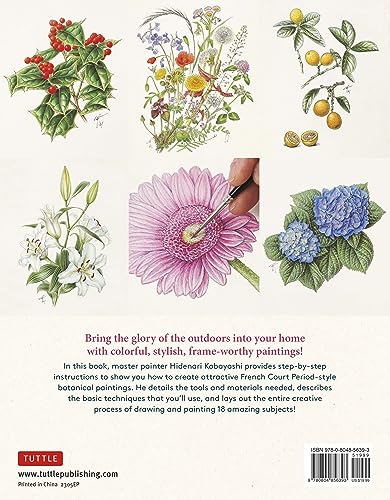 Bring the glory of the outdoors into your home with colorful, stylish, frame-worthy paintings! In this lushly illustrated book, master painter and art teacher Hidenari Kobayashi provides step-by-step instructions to show you how to create attractive drawings and paintings in the popular French botanical style. He details all the tools and materials needed, describes the techniques you’ll use, and walks you through the creative process of drawing and painting 18 different botanical subjects. A Step-by-Step Guide to Botanical Drawing & Painting provides everything you need to learn this charming style of artistic expression–from first sketch to final brushstroke! Detailed step-by-step lessons show you how to draw and paint a wide variety of subjects, including: Lovely flowers, such as velvety roses, satiny tulips, frilly hydrangeas, exotic lilies and festive wildflowers Familiar vegetables, fruits and nuts such as red onions, green peppers, lemons, kumquats and walnuts Various other interesting botanical subjects, including pine cones, holly leaves and berries, succulents and various types of leaves