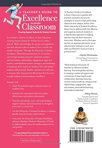 Teachers play a significant role in their students’ lives. To support this important work, A Teacher’s Guide to Excellence in Every Classroom details how K-12 educators can use the Hierarchy of Instructional Excellence and the Student Excellence Support System to maximize their impact and increase student success. Discover how to build relationships for learning, increase engagement, differentiate instruction, foster student leadership, promote a growth mindset in students, and more. Contents: About the Author Introduction Chapter 1: Teachers–Our Most Powerful Resource Chapter 2: Teaching for Excellence–Learning Resources Chapter 3: Teaching for Excellence–Classroom Routines and Procedures Chapter 4: Teaching for Excellence–Relationships for Learning Chapter 5: Teaching for Excellence–Student Engagement Chapter 6: Teaching for Excellence–Rigor and Mastery Chapter 7: Teaching for Excellence–Creative Strategies for Individual Students Chapter 8: Teaching for Excellence–Student Leadership References and Resources Index