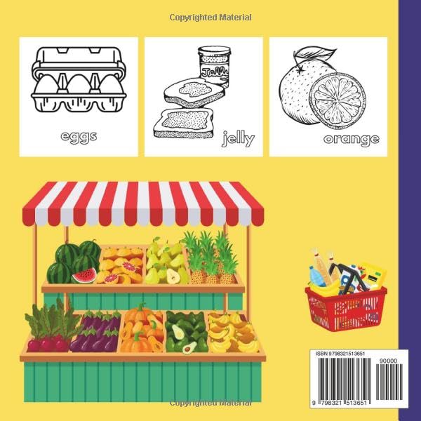 Spark your child’s creativity with this fun and educational activity! This alphabetical coloring book is a fun and exciting way for children (ages 3-12) to learn about various supermarket/grocery store items. educational each page has a different grocery item accompanied by its name single-side print to avoid bleed-through 8.5 x 8.5 in, premium paper with matte cover