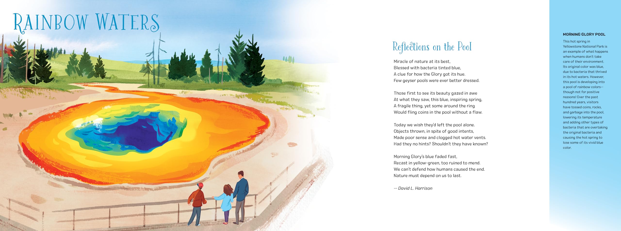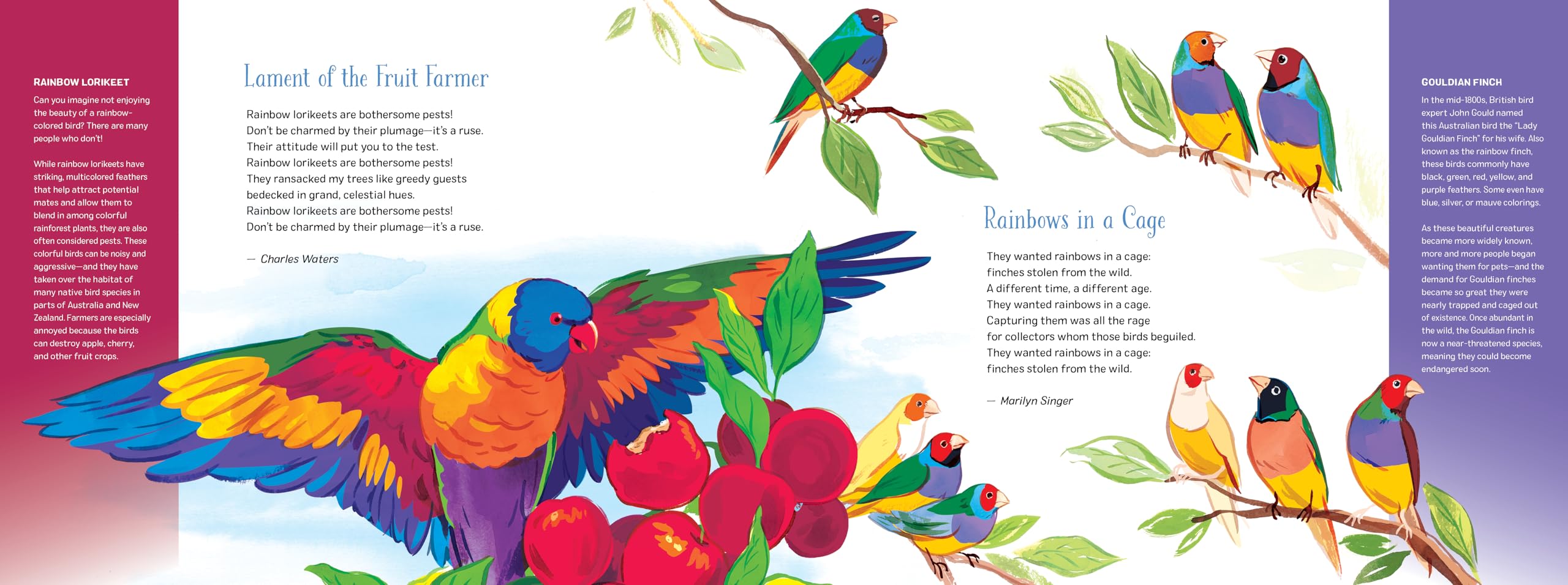 This book teaches STEAM concepts by exploring the science behind rainbows and color in nature through poetry.