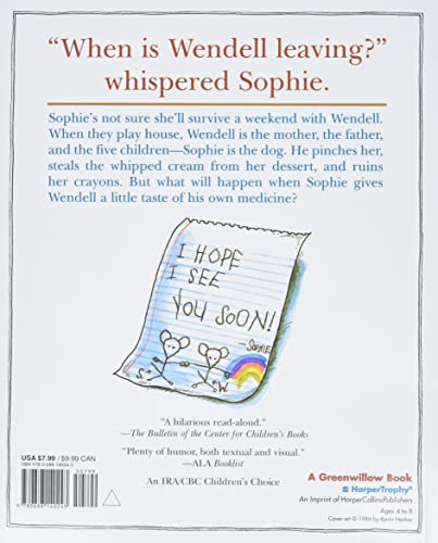 What happens when the bossiest cousin ever comes to visit for the weekend? This classic picture book about sharing and accepting others is a funny and realistic look at handling a friend or family member who isn’t so good at sharing. Wendell was spending the weekend at Sophie’s house. Playing house, Wendell was the father, the mother, and the children; Sophie was the dog. Playing bakery, Wendell was the baker; Sophie got to be the sweet roll. But when Wendell gave her a new hairdo with shaving cream, it was the last straw, and Sophie made up a game that left Wendell speechless for a time–and won the day for friendship. Written and illustrated by Kevin Henkes, the nationally bestselling and celebrated creator of Lilly’s Purple Plastic Purse, Kitten’s First Full Moon, and Chrysanthemum, this classic picture book is “a hilarious read-aloud” (The Bulletin). Whether shared at home or in the classroom, this picture book for ages 3-7 will make kids laugh in recognition.