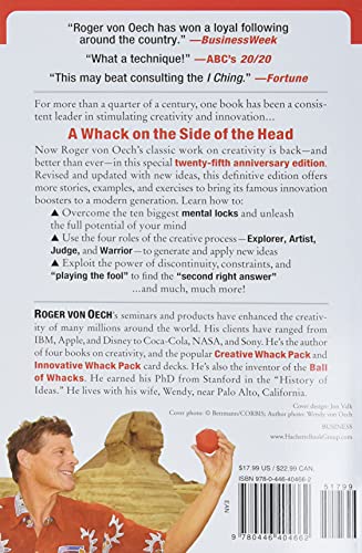 This is the 25th anniversary edition of the creativity classic by Dr. Roger von Oech. Over the years, A WHACK ON THE SIDE OF THE HEAD has been praised by business people, educators, scientists, homemakers, artists, youth leaders, and many more. The book has been stimulating creativity in millions of readers, translated into eleven languages, and used in seminars around the world. Now Roger von Oech’s fully illustrated and updated volume is filled with even more provocative puzzles, anecdotes, exercises, metaphors, cartoons, questions, quotations, stories, and tips designed to systematically break through your mental blocks and unlock your mind for creative thinking. This new edition will attract an entire new generation of readers with updated and mind-stretching material.