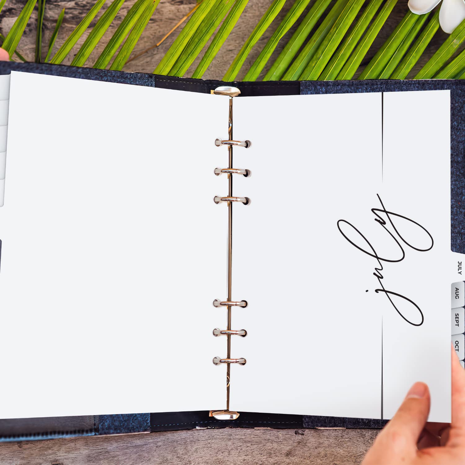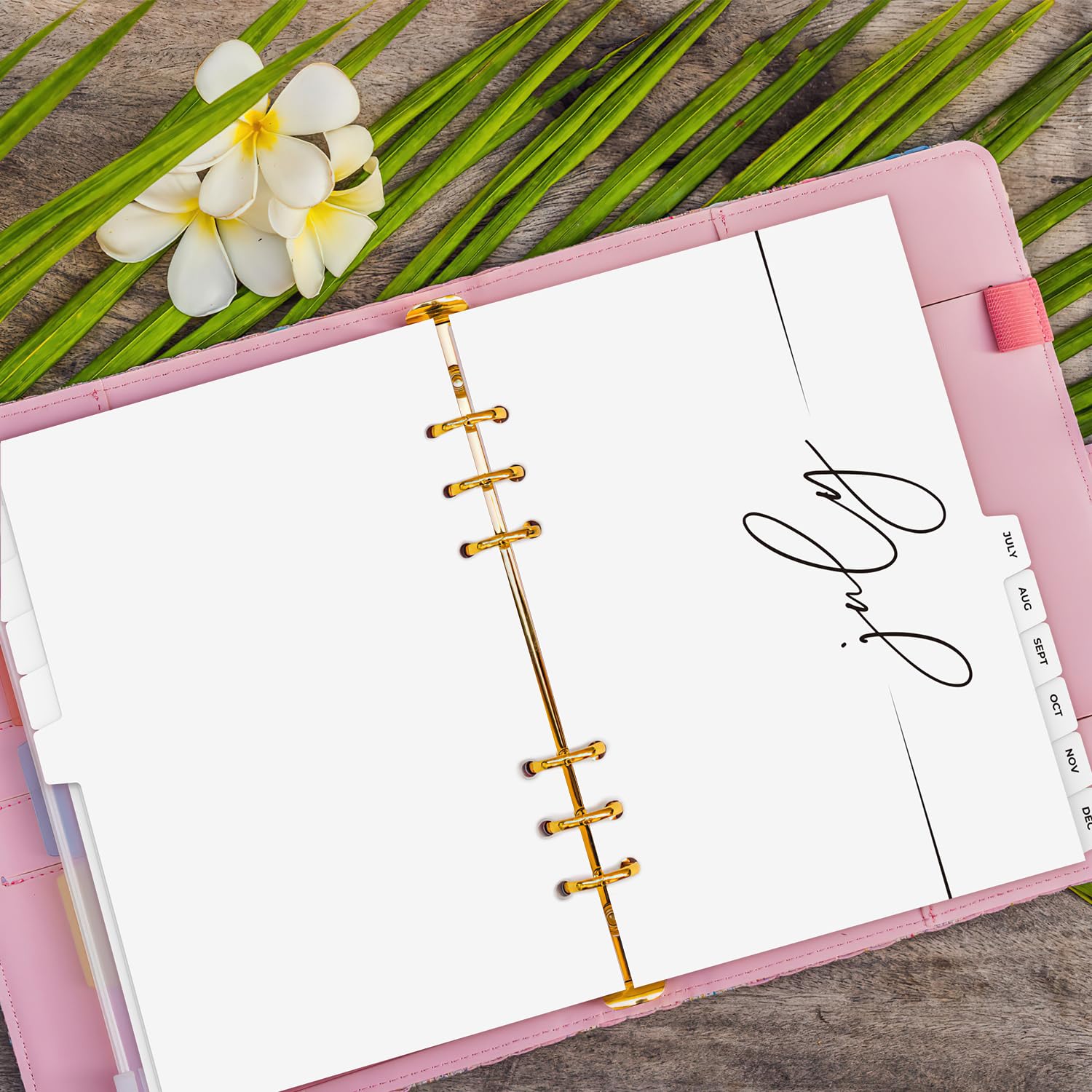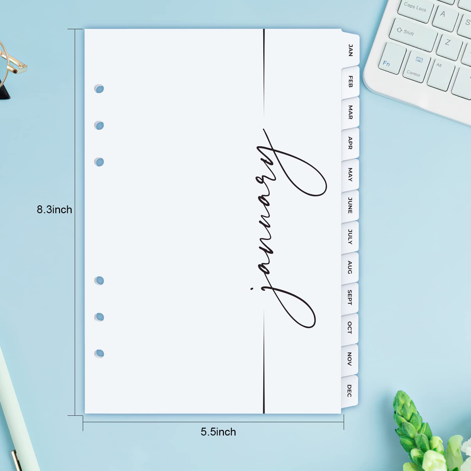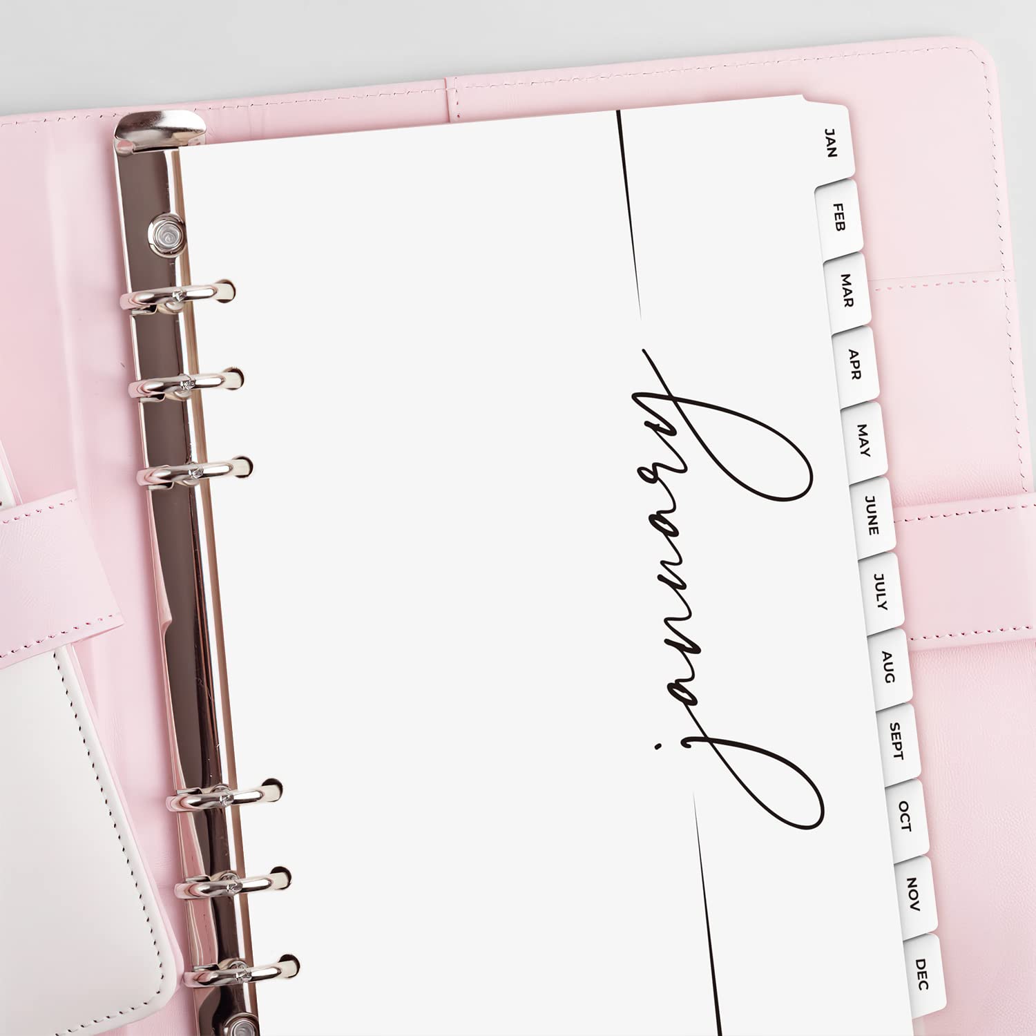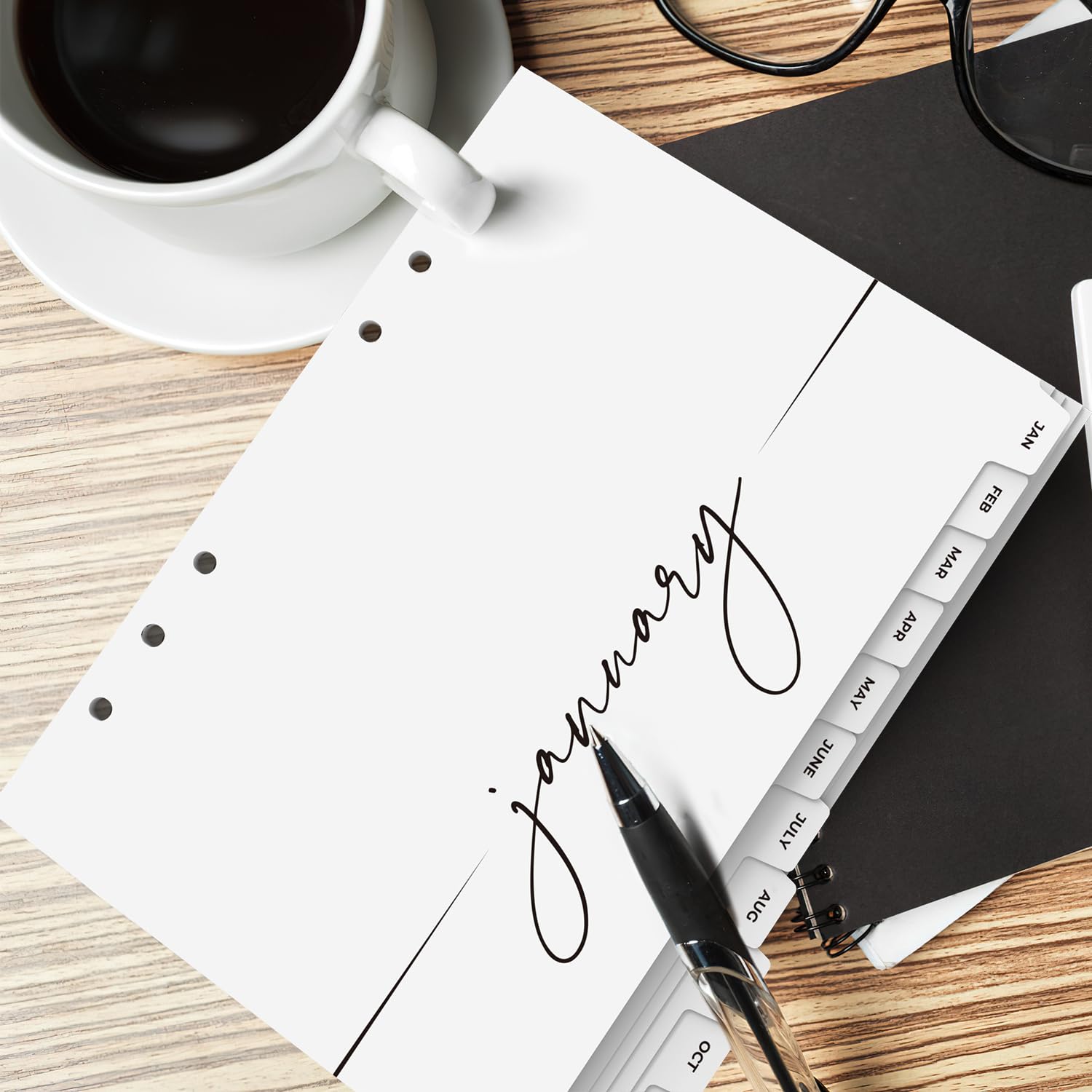Easy-to-Read Monthly Tabs: The clearly labeled monthly tabs ensure quick navigation, saving you time when flipping between sections in your A5 planner inserts or notebook tabs dividers.