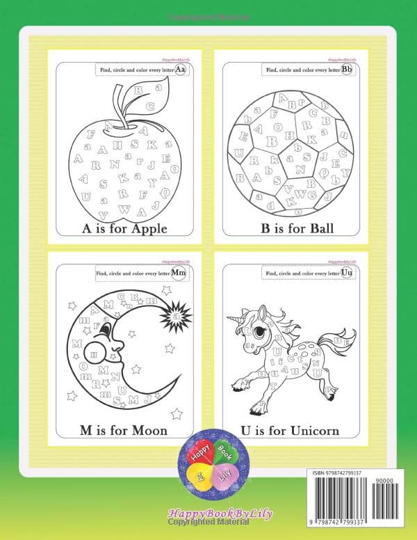 ABC Alphabet Find and Color the letter is perfect book for the alphabet learning. This set of worksheets offers letter recognition for every letter of the alphabet (uppercase and lowercase). On each worksheet, kids can color the letter, identify upper and lowercase versions of the letter. – 54 Alphabet find and color pages (26 letters) /1 sided coloring pages. Dimensions: 8.5 x 11 inches For ages 4-8 Language : English Paperback : 54 pages Let’s fun and learn!
