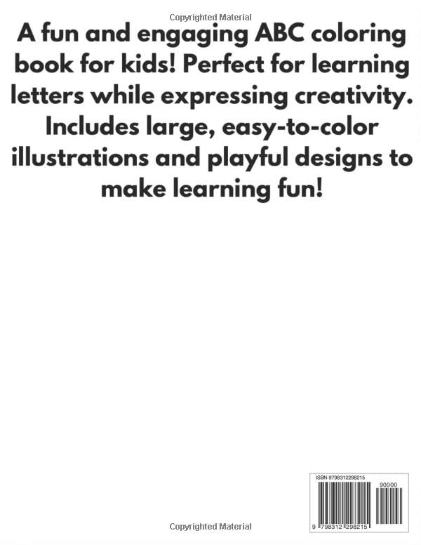Make learning ABCs fun and engaging with this adorable ABC Coloring Book for Kids! Designed for toddlers and preschoolers ages 2-7 this book helps little learners recognize letters and words while enjoying creative coloring time.