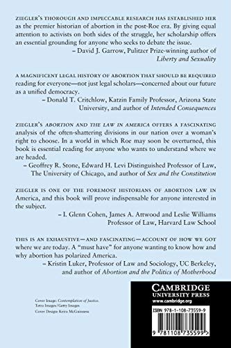 With the Supreme Court likely to reverse Roe v. Wade, the landmark abortion decision, American debate appears fixated on clashing rights. The first comprehensive legal history of a vital period, Abortion and the Law in America illuminates an entirely different and unexpected shift in the terms of debate. Rather than simply championing rights, those on opposing sides battled about the policy costs and benefits of abortion and laws restricting it. This mostly unknown turn deepened polarization in ways many have missed. Never abandoning their constitutional demands, pro-choice and pro-life advocates increasingly disagreed about the basic facts. Drawing on unexplored records and interviews with key participants, Ziegler complicates the view that the Supreme Court is responsible for the escalation of the conflict. A gripping account of social-movement divides and crucial legal strategies, this book delivers a definitive recent history of an issue that transforms American law and politics to this day.