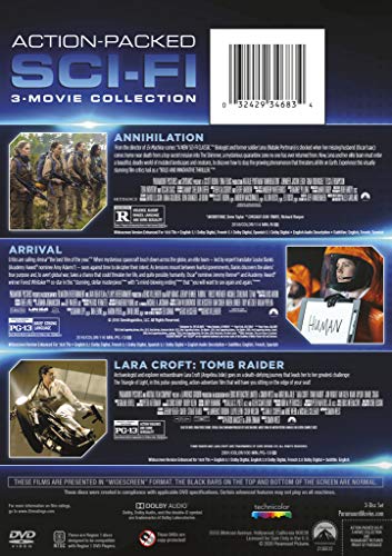 3 action packed movies with out-of-this-world Sci-Fi themes, all in one DVD collection, including Annihilation, Arrival and Lara Croft: Tomb Raider.