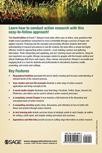 The Fourth Edition of Ernest T. Stringer’s best-selling Action Research offers easy-to-follow, clear guidelines that enable novice practitioner researchers to move comfortably through a process of inquiry and applied research. Featuring real-life examples and providing effective solutions that foster understanding of research procedures in real-life contexts, the book offers a simple but highly effective model for approaching action research: Look: building a picture and gathering information, Think: interpreting and explaining, and Act: resolving issues and problems. Using his own experience as a guide, Stringer encourages readers to grapple with the broader political and ethical challenges that frame each inquiry. The author’s engaging style makes the book especially relevant to those working with children, young adults, or people in community contexts, and is particularly relevant to those dealing with issues of diversity or with marginalized and disenfranchised groups. Clear, concise, and practical, Stringer’s accessible and engaging book is a must for students and professionals in educational, business, health, counseling, and social work settings.