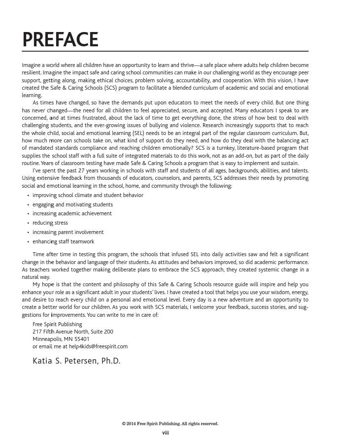 Build attitudes of respect and caring, reduce problem behaviors, empower students to solve problems, and educate the whole child with this flexible, user-friendly activity guide. The lessons’ literature-based connections allow teachers to “build in” rather than “add on” social-emotional learning (SEL) throughout the day. Field-tested in classrooms across the United States, these activities when fully implemented have resulted in improved school climate, greater parent engagement, increased academic achievement, and reduction in discipline referrals. Features of the book include: 100+ easy-to-implement year-round activities that integrate info the daily curriculum in all subject areas Monthly themes focused on empathy, bullying prevention, teamwork, decision-making, and more Concise lesson formats (Read, Discuss, Do, Relate) Discussion and writing prompts Built-in assessments Digital content includes all of the book’s reproducible forms.
