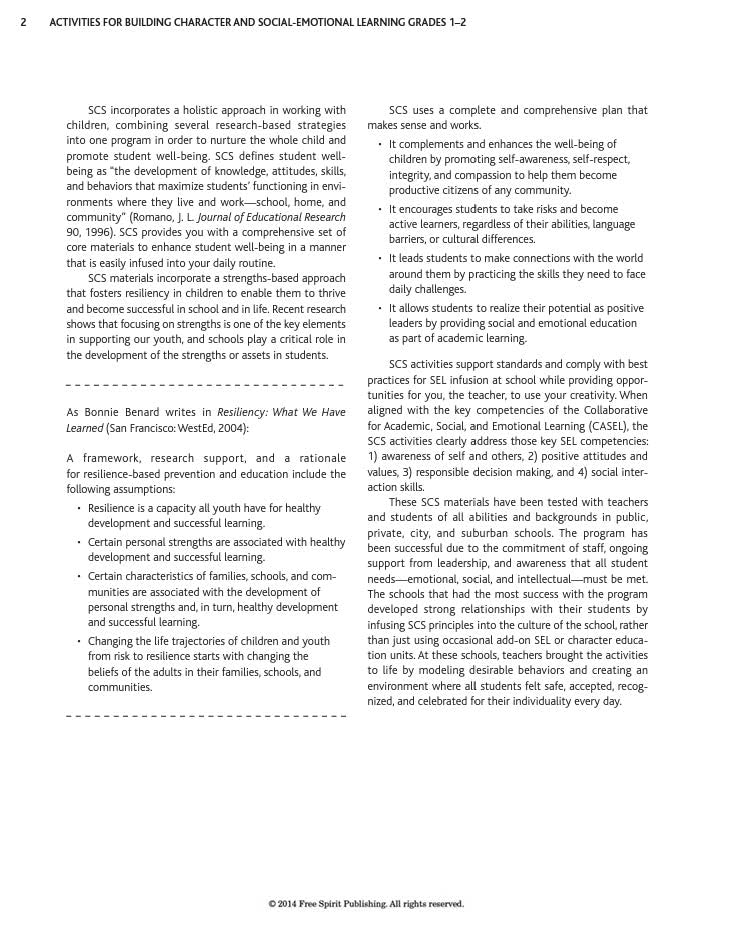 This activity book helps develop character and social-emotional skills for students in first and second grade.