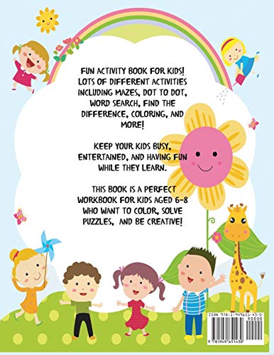 Big Activity Book for Kids Learning Is Fun! Mazes, Connect the Dots, Coloring, Word Search, Picture Puzzles, and More! Fun Activity Book for Kids! Lots of different activities including mazes, dot to dot, tracing, coloring, and more! Keep your kids busy, entertained, and having fun while they learn. Filled with many types of activities it will stimulate the brain, inspire creativity, and develop fine-motor skills. This book is a perfect workbook for kids aged 6-8 who want to color, solve puzzles, practice cutting skills, trace, count, and be creative. Suitable for both boys and girls, this activity book makes a great travel book or vacation workbook. It can also be taken on long car rides to pass the time. Makes a great gift for kids! This children’s activity book features: A big variety of activities Word search, connect the dots, mazes, tracing, picture puzzles, color by number, coloring Large 8 1/2 x 11 inch pages Single-sided pages make tear out easy High-resolution printing Printed on bright white, quality paper stock Durable cover High-quality book