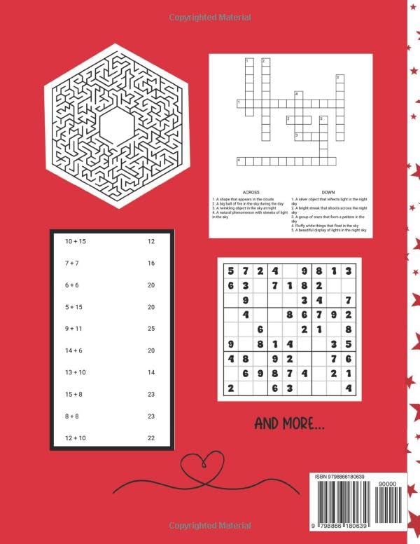 Discover the Joy of Learning with Our Activity Puzzle Book for Kids! Embark on an adventure of mind-boggling puzzles and brain-teasing fun with our 122-page “Activity Book for Kids” – your child’s new favorite companion for endless entertainment and educational play! Designed specifically for curious minds aged 6 to 10. Packed with Over 112 Engaging Puzzles and Games! Our children’s activity book overflows with a variety of challenges including: Crosswords: Enhance vocabulary and spelling skills. Word Search: Challenges that sharpen focus and develop pattern recognition. Mazes: Boost problem-solving skills and navigational abilities. Sudoku: Introduce logical thinking and number placement strategy. Math Problems: Strengthen mathematical skills in a fun and interactive way. Tic Tac Toe: Encourage strategic thinking and fun competition with this classic game. Plus, a complete answer key in the back, ensuring your little puzzle masters can check their work and learn from missteps! Whether you’re planning a family vacation, seeking a wholesome travel activity, or just looking for a way to reinforce school learning with at-home practice, this book hits the mark every time. Say goodbye to the “Are we there yet?” and hello to “I solved it!” with the “Activity Book for Kids”. It’s not just a workbook; it’s a launchpad for young minds, where every page turns fun into a learning milestone. Let your child join the ranks of little problem-solvers who can’t wait to tackle the next puzzle. Don’t wait for another school break to invigorate your child’s love for learning. Empower, entertain, and educate. One page at a time.