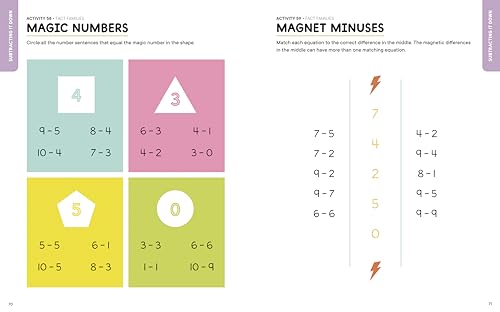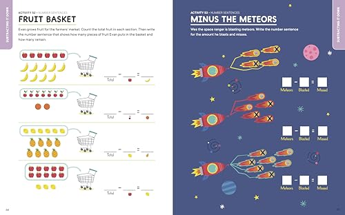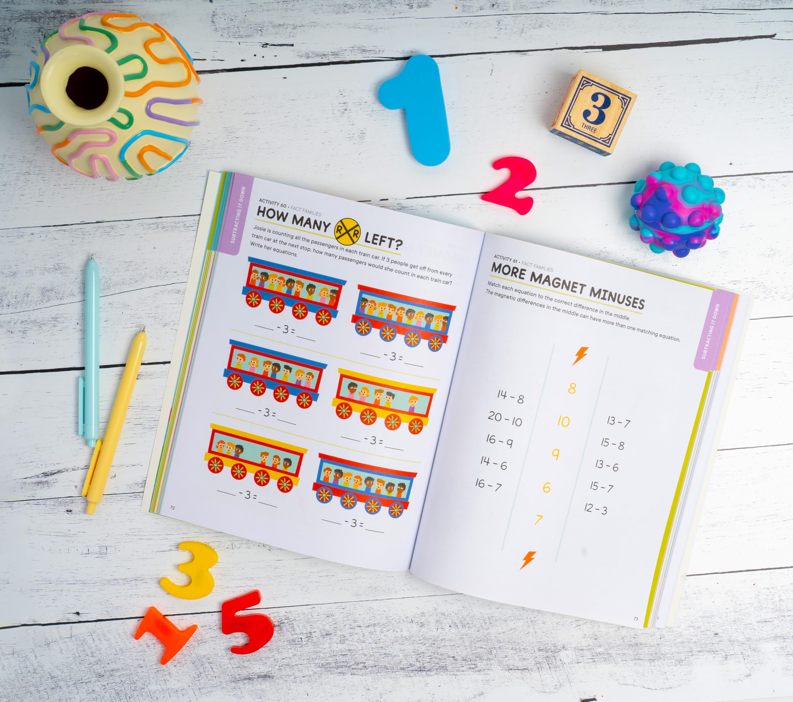 Fun, engaging activities for essential addition and subtraction skills, specially designed to support kindergarteners! From the author of the bestselling Complete Kindergarten Math Workbook. Addition and Subtraction Kindergarten Math Workbook offers a bright, imaginative way to learn core addition and subtraction concepts while practicing number sequencing, identification, and sentences. Age-appropriate activities support kindergarteners as they build math confidence. Whether counting cats, adding spaceships, or finding the missing pizza slices, kids will find learning math has never been so fun! Inspires a love of math! 100+ counting, number sentence, and critical thinking games expose kindergarteners to a wide range of concepts, allowing kids to explore–and learn to love math–at their own pace. Bright colors and illustrations to capture attention! Kids retain information best when they are captivated by the colors and characters on the page. Fun designs draw in each child, keeping them engaged from the first to the last page. Follows Common Core curriculum. Written by a longtime math educator, this workbook offers trainloads of excitement while ensuring learning remains front and center. Includes timed tests. A chapter of timed tests gives kids a chance to practice their memorization skills and witness their growth!