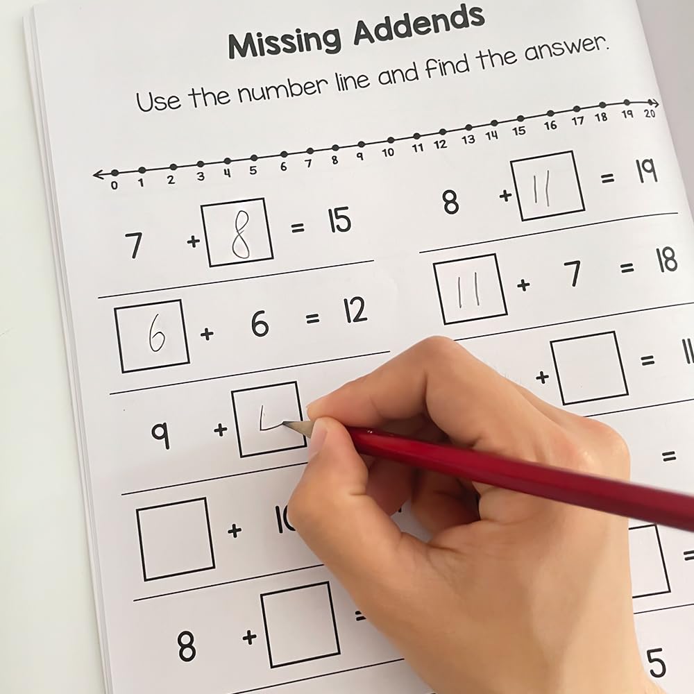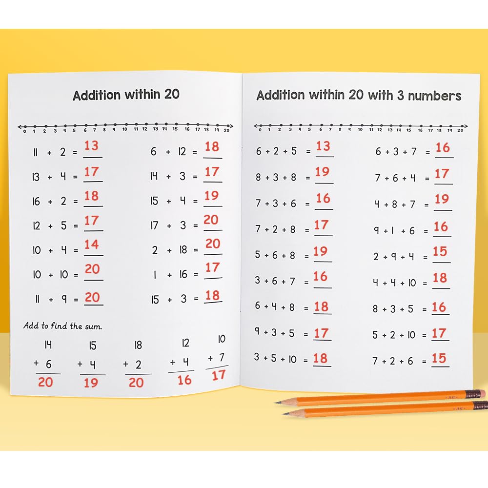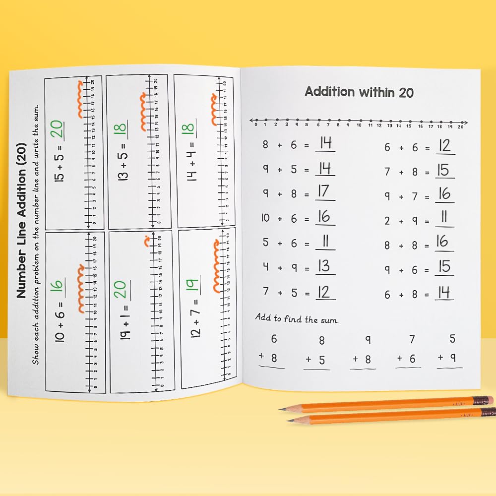Addition & Subtraction Within 20 Number Line Math Workbook, Grade 1st-2nd Math Practice, Montessori Early Math Problem-solving Practice Teaching Aids