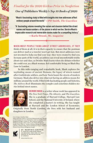 Finalist for the 2020 Kirkus Prize for Nonfiction | One of Time Magazines’s 100 Must-Read Books of 2020 | Finalist for the Goodreads Choice Awards, Best History & Biography 2020 | Longlisted for the 2020 Porchlight Business Book Awards “An entertaining quest to trace the origins and implications of the names of the roads on which we reside.” –Sarah Vowell, The New York Times Book Review When most people think about street addresses, if they think of them at all, it is in their capacity to ensure that the postman can deliver mail or a traveler won’t get lost. But street addresses were not invented to help you find your way; they were created to find you. In many parts of the world, your address can reveal your race and class. In this wide-ranging and remarkable book, Deirdre Mask looks at the fate of streets named after Martin Luther King Jr., the wayfinding means of ancient Romans, and how Nazis haunt the streets of modern Germany. The flipside of having an address is not having one, and we also see what that means for millions of people today, including those who live in the slums of Kolkata and on the streets of London. Filled with fascinating people and histories, The Address Book illuminates the complex and sometimes hidden stories behind street names and their power to name, to hide, to decide who counts, who doesn’t–and why.