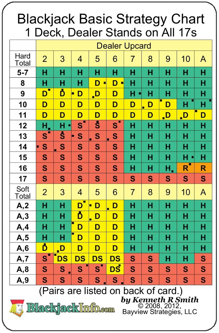 This set of twelve advanced strategy cards for blackjack offers more than just the usual basic strategy information. This set combines perfect basic strategy with optimized card counting index numbers for the most popular card counting system, the Hi-Lo. Take your game to the next level with cards optimized for 6 popular blackjack variations. The set includes two cards per rule set, with the first card offering numeric Hi-Lo index numbers inside each square. A second “stealth” card for each game encodes the index numbers using the location of a small black dot inside each square. The card counting index numbers for each game are perfectly optimized for that particular game, and the cards include indexes from -5 to +5. You won’t find better quality indexes anywhere. The rule sets included are: 1 Deck, Dealer Stands on All 17s 1 Deck, Dealer Hits Soft 17 2 Decks, Dealer Stands on All 17s 2 Decks, Dealer Hits Soft 17 4/6/8 Decks, Dealer Stands on All 17s 4/6/8 Decks, Dealer Hits Soft 17 Each card is pocket sized (4.13″ x 2.91″), and made of solid durable plastic.