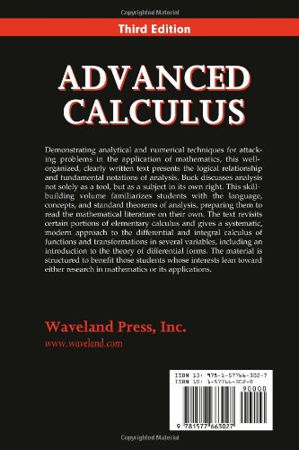 Demonstrating analytical and numerical techniques for attacking problems in the application of mathematics, this well-organized, clearly written text presents the logical relationship and fundamental notations of analysis. Buck discusses analysis not solely as a tool, but as a subject in its own right. This skill-building volume familiarizes students with the language, concepts, and standard theorems of analysis, preparing them to read the mathematical literature on their own. The text revisits certain portions of elementary calculus and gives a systematic, modern approach to the differential and integral calculus of functions and transformations in several variables, including an introduction to the theory of differential forms. The material is structured to benefit those students whose interests lean toward either research in mathematics or its applications.