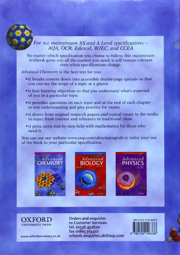 Advanced Chemistry breaks new ground for A-Level texts with revolutionary computer-generated graphics of molecules that will bring chemistry to life for your students. With full mathematical support within ‘Maths boxes’ and at the end of the book, Advanced Chemistry will completely inspire and support chemistry students.
