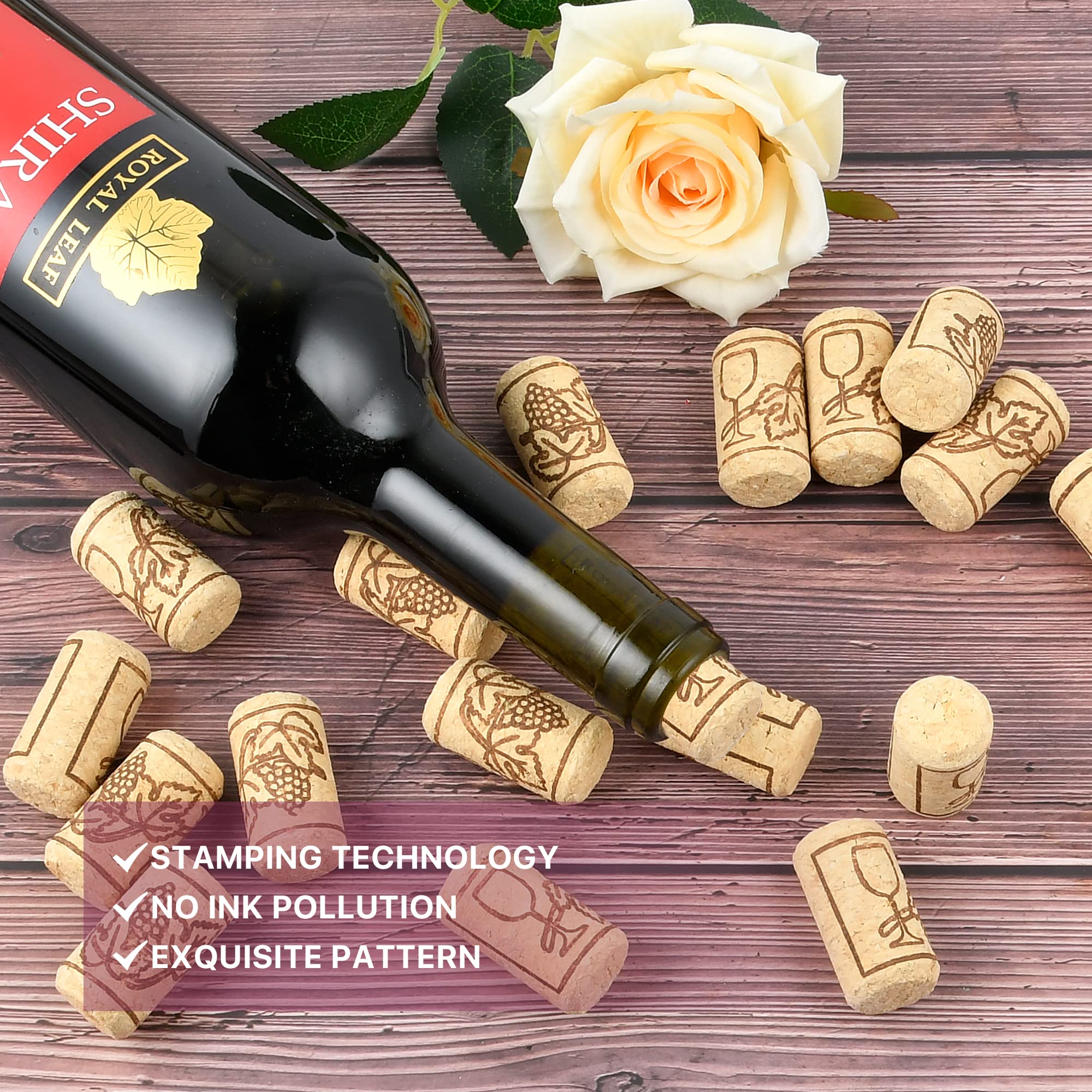 • STAMPING TECHNOLOGY: The pattern on the top of the cylindrical wooden stopper is stamped with stamping technology, with no ink contamination, so you can use it without worrying about the taste of your wine. The crafted wood stopper has a pale yellow appearance and a stamped cup and grape design for a classic and elegant look.