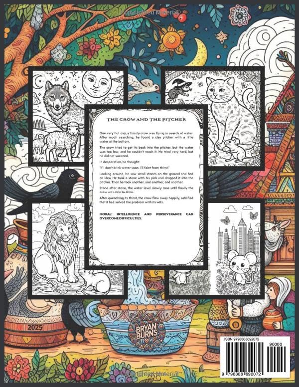 This book promotes literacy, moral reasoning, and fine motor skills through the combination of classic fables and coloring activities.