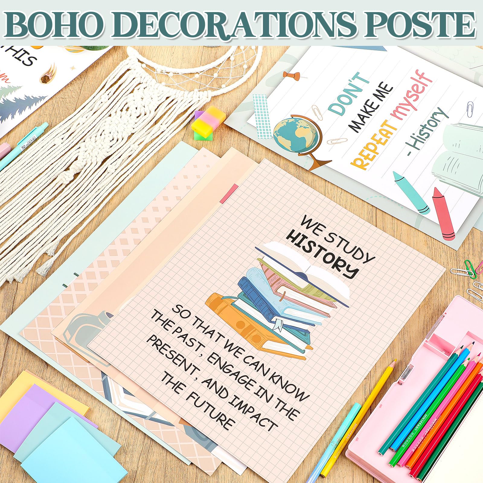 - Excellent Design: bohemian style teacher classroom decorations use Morandi colors and rainbow fonts to design the color scheme; The soft colors and classic patterns of the posters look simple and cute, creating a charming visual effect, which helps to increase students’ interest in social studies when reviewing any key information they have learned