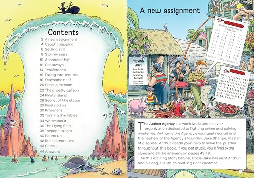 In his latest amazing mission for the Action Agency, Arthur finds himself stranded on an island. It’s not long before he’s engaged in a battle of wits with a gang of ruthless pirates. He’ll need all the help you can give him to solve a host of fiendish puzzles and foil the pirates’ plan. Another classic Usborne Puzzle Adventure returns to delight a whole new generation.